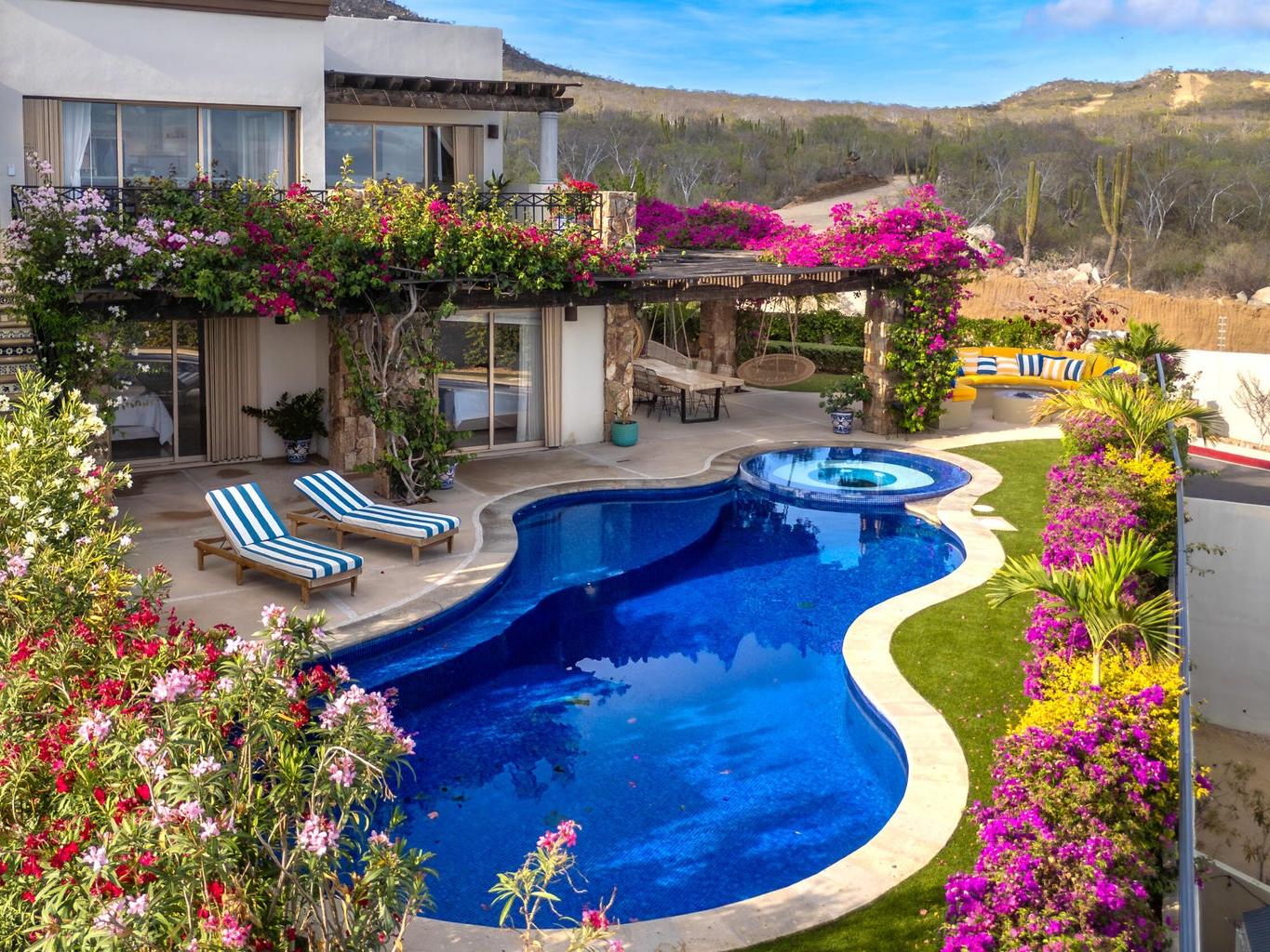 Featuring 4 bedrooms, 3 full bathrooms, and 2 half baths, this home is thoughtfully laid out to provide comfort. The outdoor space is exceptional with the largest private pool in all of Ventanas and a jacuzzi with a dual boiler heating system to keep both warm. You'll also enjoy a fire pit, Sonos outdoor sound system and beautifully landscaped garden areas.