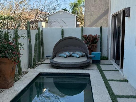 Beautifully appointed and furnished 3 Bedroom 2 1/2 Bathroom home hosting spectacular city views.Two ground floor Bedrooms adjoined by a Jack and Jill bathroom with ample closets space opening up to sundeck and splash pool. Laundry room and enclosed two car garage round out the first floor, 2nd floor boasts modern kitchen and island with upscale appliances joining the living area with outdoor kitchen. Master bedroom is spacious with large closet and modern bathroom. The roof top invites you to have great times with friends and family in the fire pit or in the BBQ area.