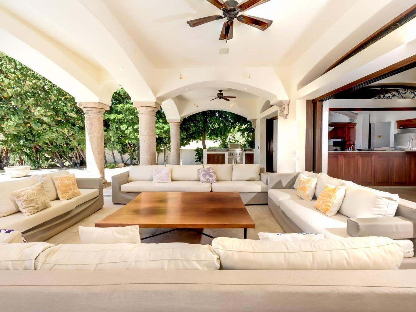 Tucked inside the coveted gates of Cabo del Sol, Casa Carrera blends casual luxury with timeless coastal elegance. From the moment you arrive, the home welcomes you with warm architectural details and an easygoing indoor-outdoor flow that defines life in Los Cabos. The open-concept great room spills effortlessly onto a private poolside terrace designed for both sun-drenched lounging and shaded al fresco dining. Entertain at the built-in bar, gather around for cocktails, or host intimate dinners indoors or out—this space flexes with your lifestyle.