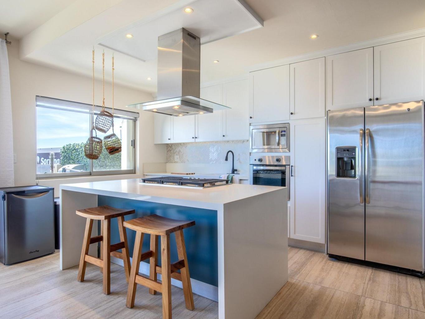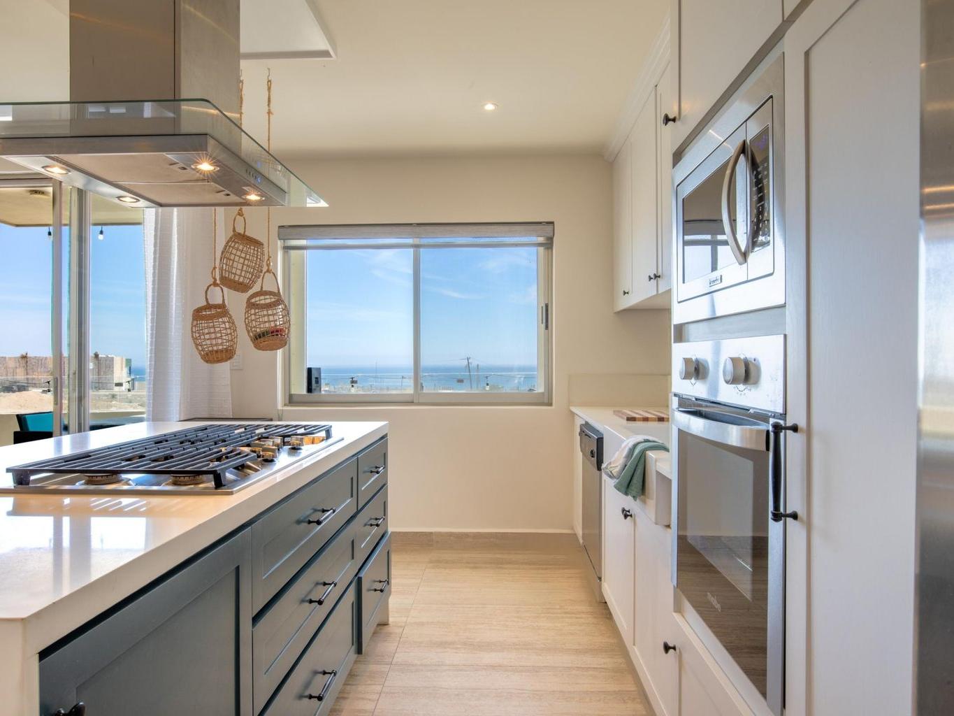 Upon entering the home, you'll be greeted by a massive wall of windows allowing you to enjoy the breathtaking and unobstructed view of the Sea of Cortez. The open-concept design of the living and dining space creates a bright and airy atmosphere, complemented by a fully kitted-out chef's kitchen. The large dining area opens onto a landscaped private backyard providing a serene setting where you can relax and watch the passing cruise ships.