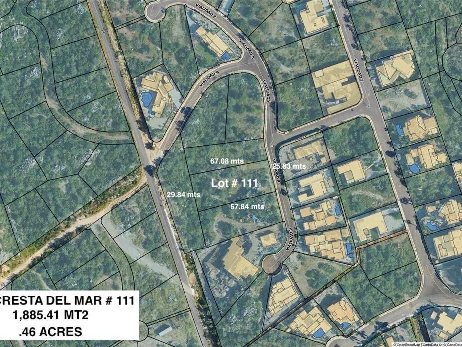 SELLER FINANCING!!! Large Ocean & Arch View Homesite in Cabo with Approved Plans for a Truly Stunning Contemporary Residence! This is one of the most unique lots in prestigious residential community Cresta del Mar and one of the largest at 1,885 MT2, just under half an acre. Designed by top firm Red Group, the contemporary 730 MT2 or 7,854 Sqft. Home is an architectural gem that can become a reality for the right owner. All plans are approved by Cresta del Mar and are included in the sale of the homesite. The adjacent 1,957 MT2 lot can also be purchased, architectural plans are also available for a magnificent residence to be built on the 2 lots that equal almost 1 Acre.
