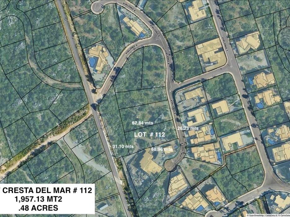 SELLER FINANCING!!! Large Ocean & Arch View Homesite in Cabo San Lucas! This is one of the most unique lots in prestigious residential community Cresta del Mar and one of the largest at 1,957 MT2, just under half an acre. The adjacent 1,885 MT2 lot can also be purchased, both lots combined are 3,842 MT2, almost 1 Acre. Designed by top firm Red Group, architectural plans are available for a magnificent 1,268 MT2 or 13,648 Sqft contemporary residence to be built on the 2 lots. The home is an architectural gem that can become a reality for the right owner.