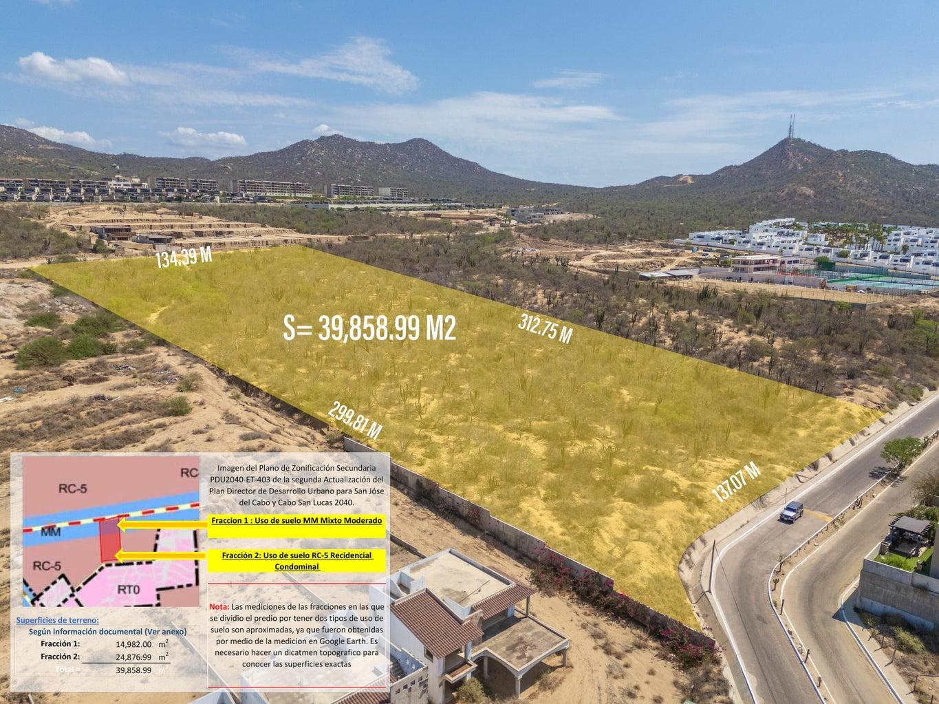 Unlock the potential of a premier 4-hectare (39,858.99 square meters) parcel of land in the prestigious El Tezal area, Cabo San Lucas. This strategically located property offers unparalleled opportunities for developers seeking to create a landmark project in one of the region's most sought-after neighbourhoods. Stunning ocean and majestic mountain vistas