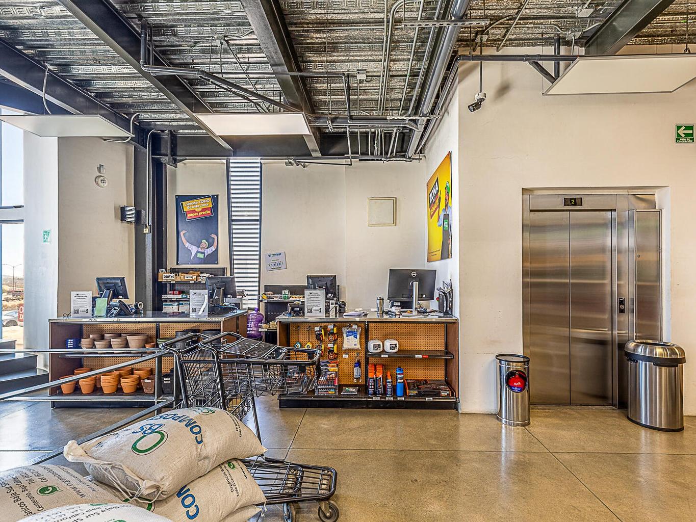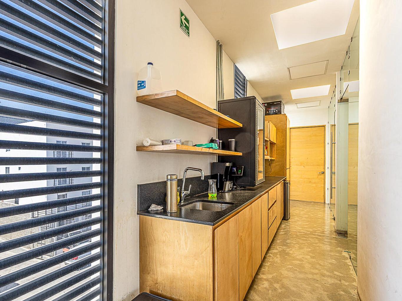 Additional features include a fully equipped integral kitchenette, 2 half bathrooms, an elevator for easy access between levels, storage area, a dedicated office area, and a flexible space that can be used as a conference room.