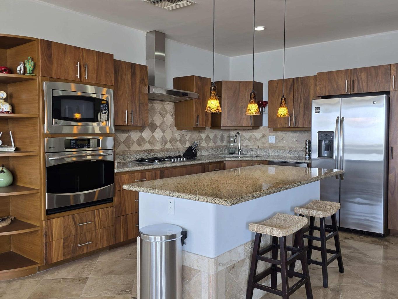 The premier place in Pedregal is located in the best location to access downtown and the marina. Picturesque views from every bedroom that allow you to see the beautiful ocean as well as the city. The community is perched right above downtown and is less than a 5 minute walk to the marina. The community consists of a community pool/entertaining area as well as a fitness center. Easy to walk to all the fantastic restaurants downtown and even easier to walk to the restaurant on site (in the community). The condo has a renovated kitchen with all new cabinets. Each of the bedrooms have their own en-suite bathroom. A giant terrace consists of your own private plunge pool. This condo is perfect for entertaining and would also generate a nice ROI, if you wanted to rent it.