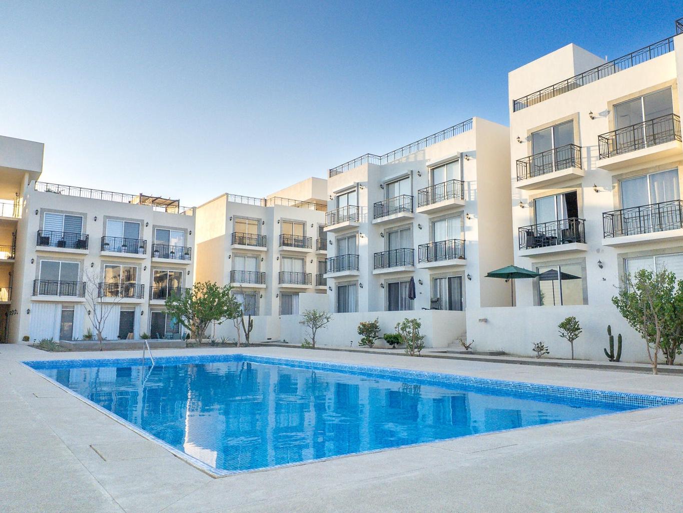 Penthouse-style 3BR/2BA condo located in Palmitos Residential, Cabo San Lucas. This top-floor unit features a private rooftop terrace. Inside, enjoy a modern kitchen with granite countertops and stainless steel appliances, spacious bedrooms with natural light, and stylish bathrooms. The gated community offers a large pool, landscaped common areas, and assigned parking. Strategically located just minutes from downtown Cabo, shopping centers, schools, gas stations, and the beach, this property combines comfort, convenience, and investment potential. Whether you're looking for a primary residence, a vacation getaway, or a high-return rental unit, this is a great opportunity in one of Cabo's fastest-growing areas.