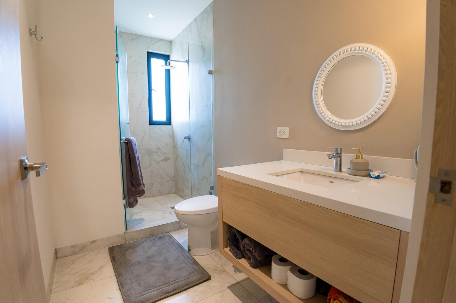 Enjoy the spacious bedroom with a plush double bed and ample closet space, ensuring your comfort.