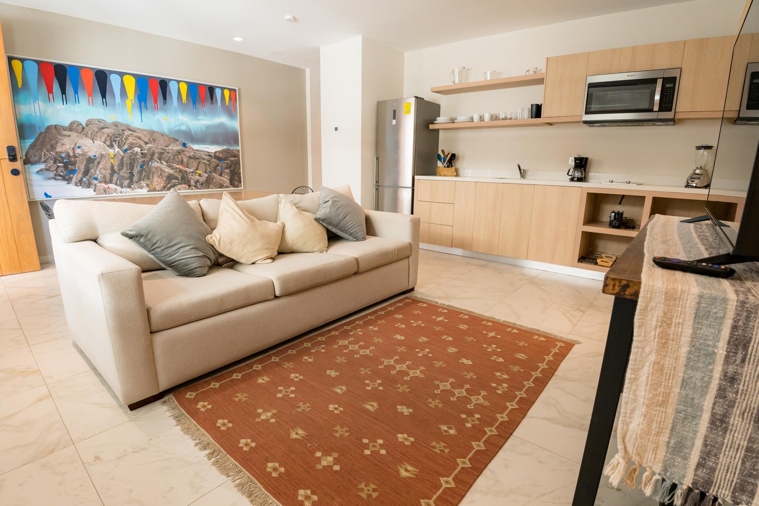 Welcome to your dream turn key one-bedroom condo at Cardinal Living in Cabo San Lucas! This modern retreat features an layout with a stylish living area and a fully equipped kitchen, perfect for both relaxation and entertaining.