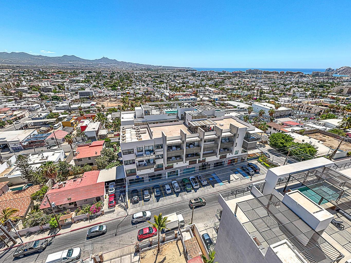 In the heart of downtown Cabo San Lucas, a few blocks from the main plaza, vibrant restaurants, bars, art galleries, and boutique shops. Within an 8‑minute walk to the Marina, and about 1.3 miles to Medano Beach, Cabo's prized stretch of sand.
