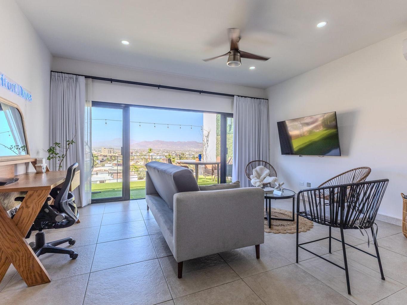 Live in the prestigious neighborhood of Pedregal in your beautiful condo. Priced to sell ! A 3 bedroom/3 bathroom place with a large patio, AC in all rooms and a complete kitchen. Views of centro, the city and mountains. Furnishings are an additional $20,000 as the whole condo is furnished and decorated. The master bedroom has a walk-in closet with a attached patio and view. A great place to live or rent out, with a strong history of rentals via Airbnb. Need advanced notice to tour condo, since it is rented out consistently.
