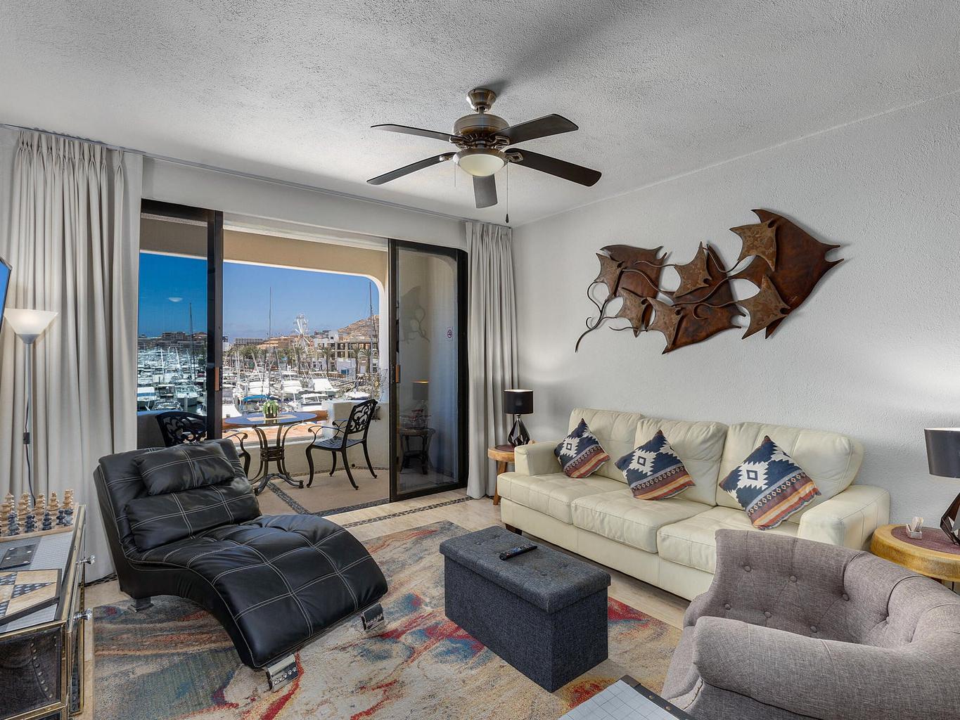Welcome to your condo in the heart of downtown Los Cabos. This two-bedroom, two-bathroom unit offers a comfortable layout with a spacious terrace overlooking the marina, ideal for enjoying the view or keeping an eye on the activity below.