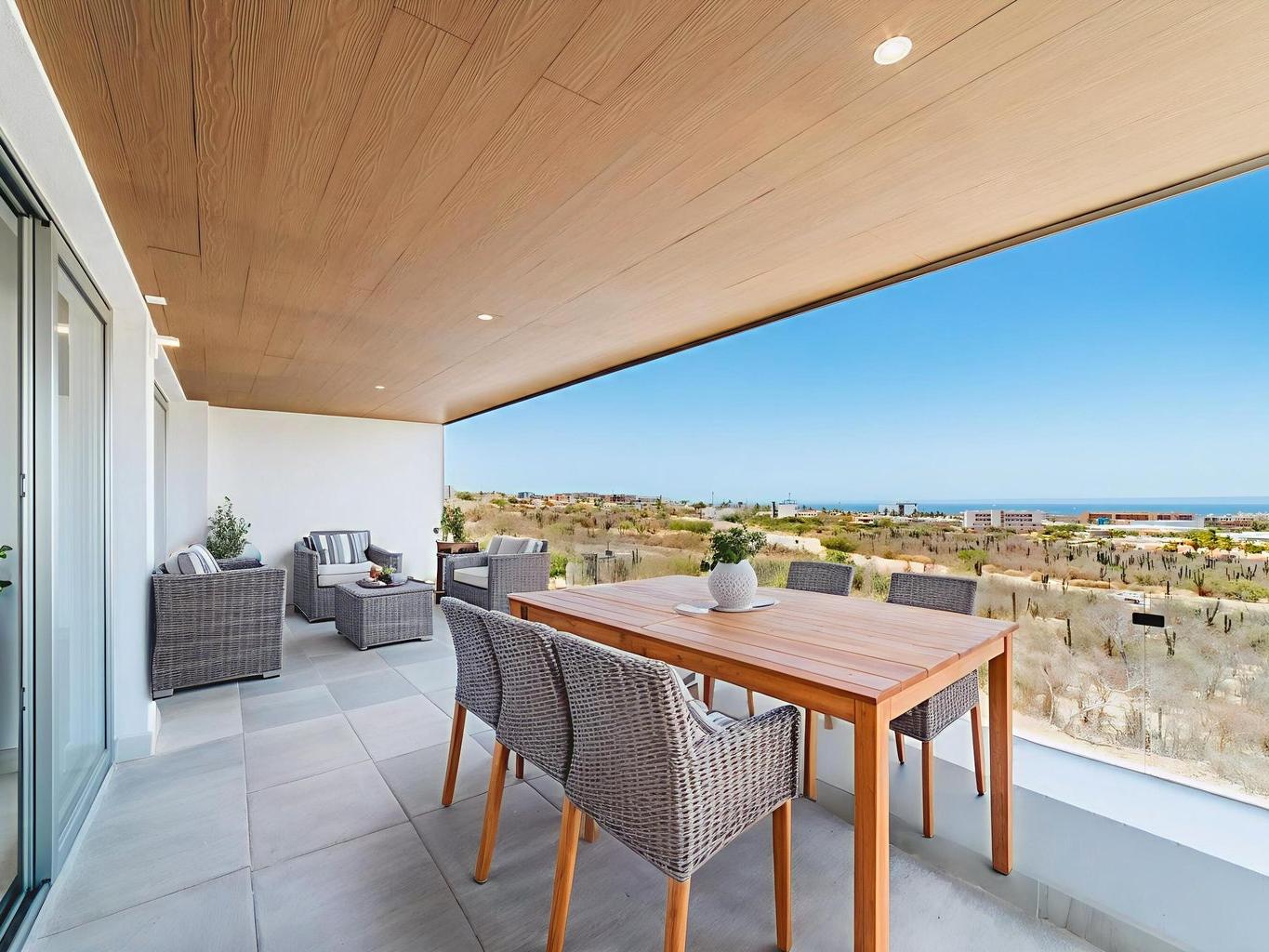Where luxury meets lifestyle - nestled in the most sought-after building of this upscale community, this exclusive ocean-facing corner condo sits at the front of the development offering unfiltered views of the iconic Cabo Arch. Centrally located with top schools, restaurants, markets and shops just moments away - perfect for families, full-time residents, or savvy vacation homeowners. Corner unit with additional window, bringing natural light and privacy into the home. Fluid open-concept floor plan effortlessly transitions to the expansive ocean- and mountain-view terrace. Enjoy resort-style living and top-tier amenities including multiple pools, tennis and pickleball courts, kids' play area, outdoor BBQ and gathering zones and a brand-new, fully equipped fitness center.
