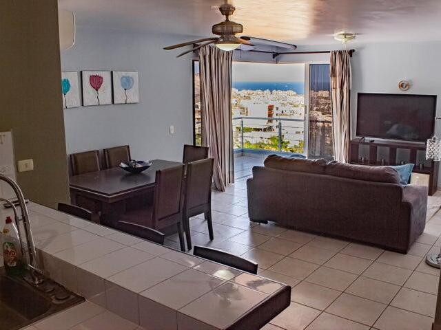 Discover the perfect blend of luxury, convenience, and investment potential with this exceptional 2-bedroom, 2-bathroom penthouse condo. Located just a 20-minute walk or a 5-minute drive from the heart of the Marina, this property offers unparalleled views of downtown Cabo San Lucas and the ocean from its private balcony.
