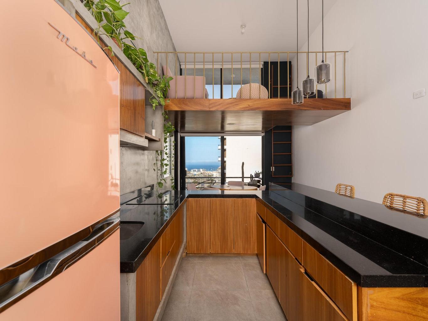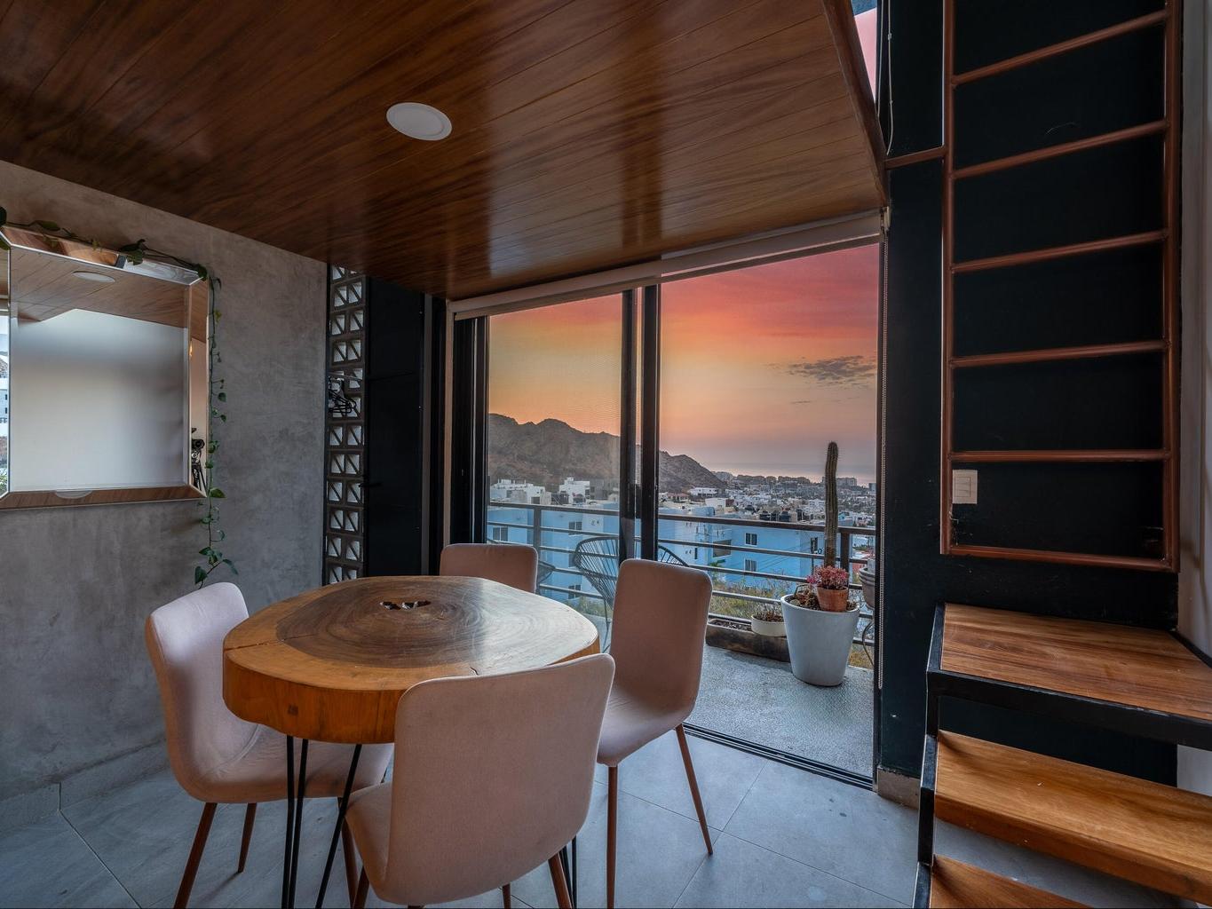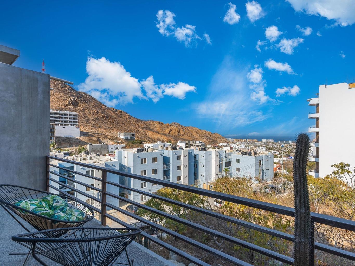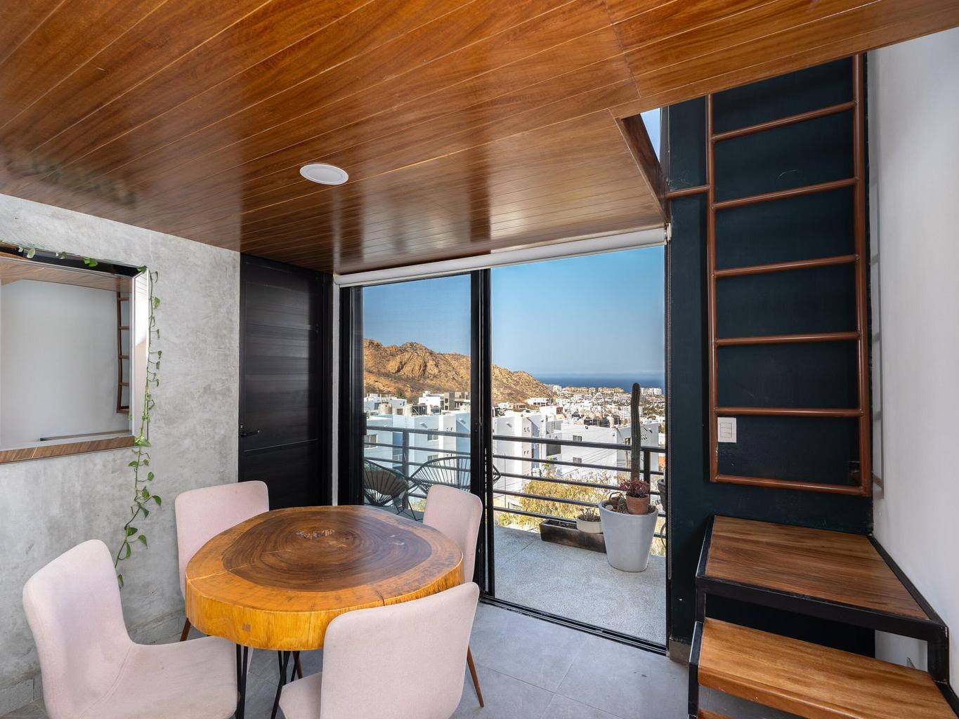 Furnished penthouse located on the top floor of HD Phase 1, featuring double-height ceilings that enhance space and natural light. From the private terrace, enjoy sweeping views of the ocean and surrounding mountains, with unforgettable sunrises and sunsets. The layout includes two bedrooms, one full bathroom, a fully equipped kitchen, dining area, living room, and laundry space. The shared rooftop offers a pool, lounge area, and BBQ — ideal for enjoying the climate and scenic beauty of Los Cabos. A modern residence with striking design and a privileged natural setting.