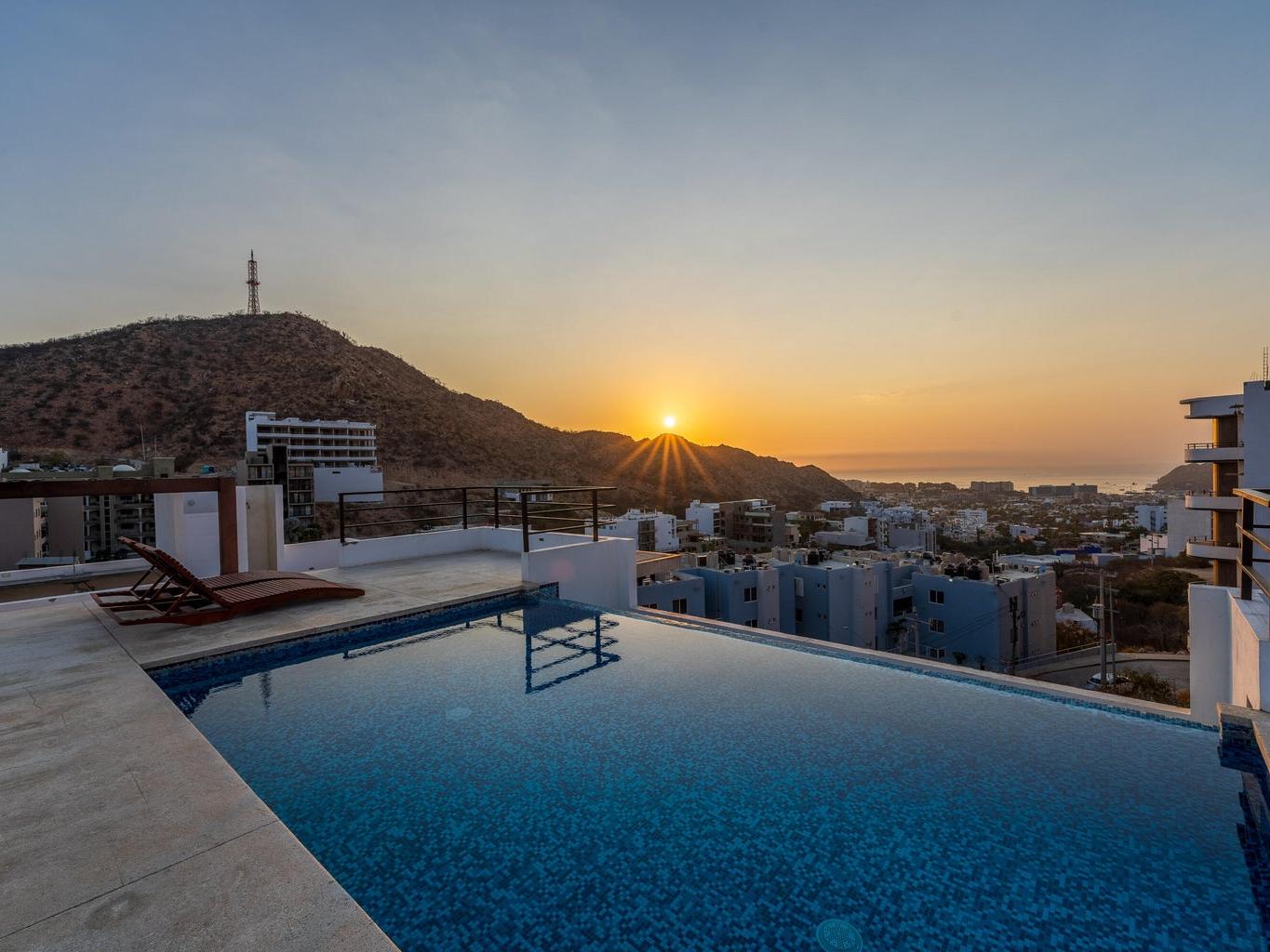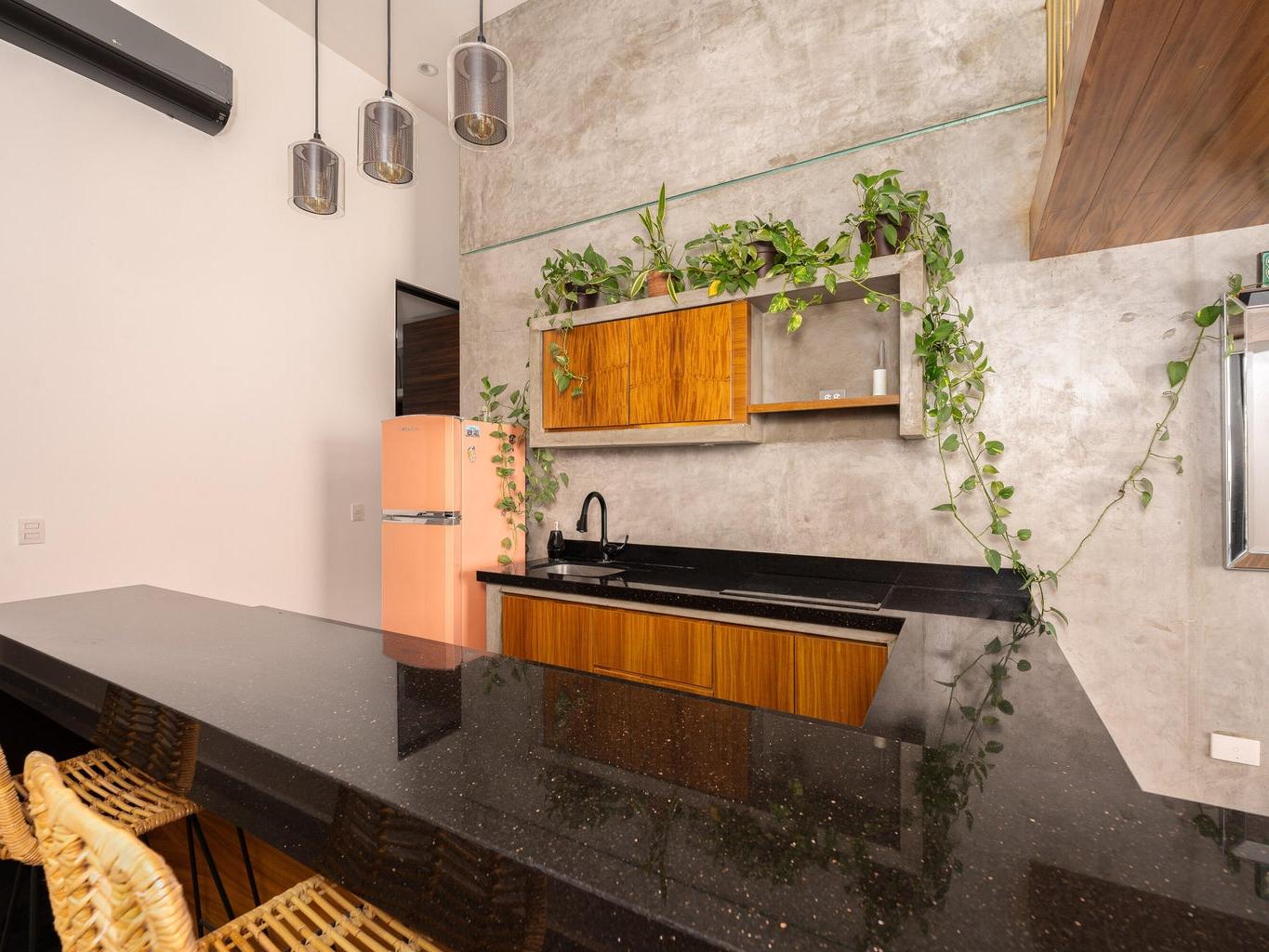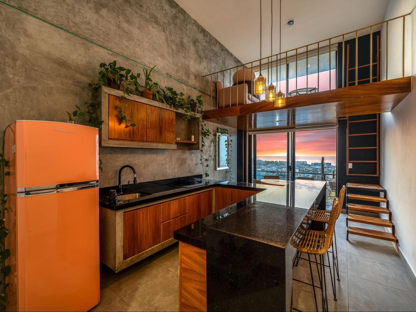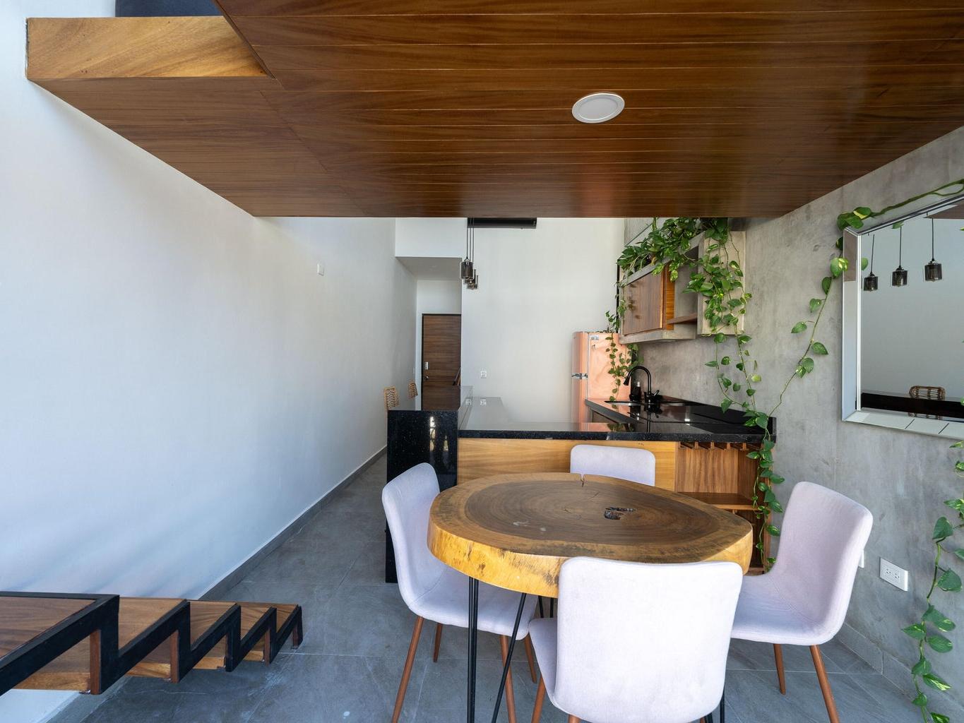 Furnished penthouse located on the top floor of HD Phase 1, featuring double-height ceilings that enhance space and natural light. From the private terrace, enjoy sweeping views of the ocean and surrounding mountains, with unforgettable sunrises and sunsets. The layout includes two bedrooms, one full bathroom, a fully equipped kitchen, dining area, living room, and laundry space. The shared rooftop offers a pool, lounge area, and BBQ — ideal for enjoying the climate and scenic beauty of Los Cabos. A modern residence with striking design and a privileged natural setting.