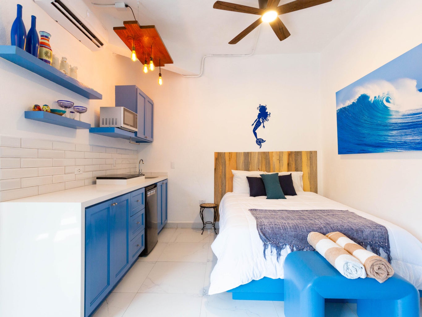 This studio condo was recently renovated from top to bottom. It is a great investment opportunity at a low price point, making it easy for buyers to get into the Cabo market. The studio is ideally located on the marina, just a two-minute walk to Medano Beach, downtown, and other hot spots in Cabo. The building offers onsite property management, so you don't have to worry about check-ins, maintenance, and cleanings. There is also a newly built rooftop pool that offers spectacular views of the marina. Don't miss the opportunity to purchase this turnkey unit that is immediately available for vacation rentals. This unit will be difficult to show due to the high volume of renters.