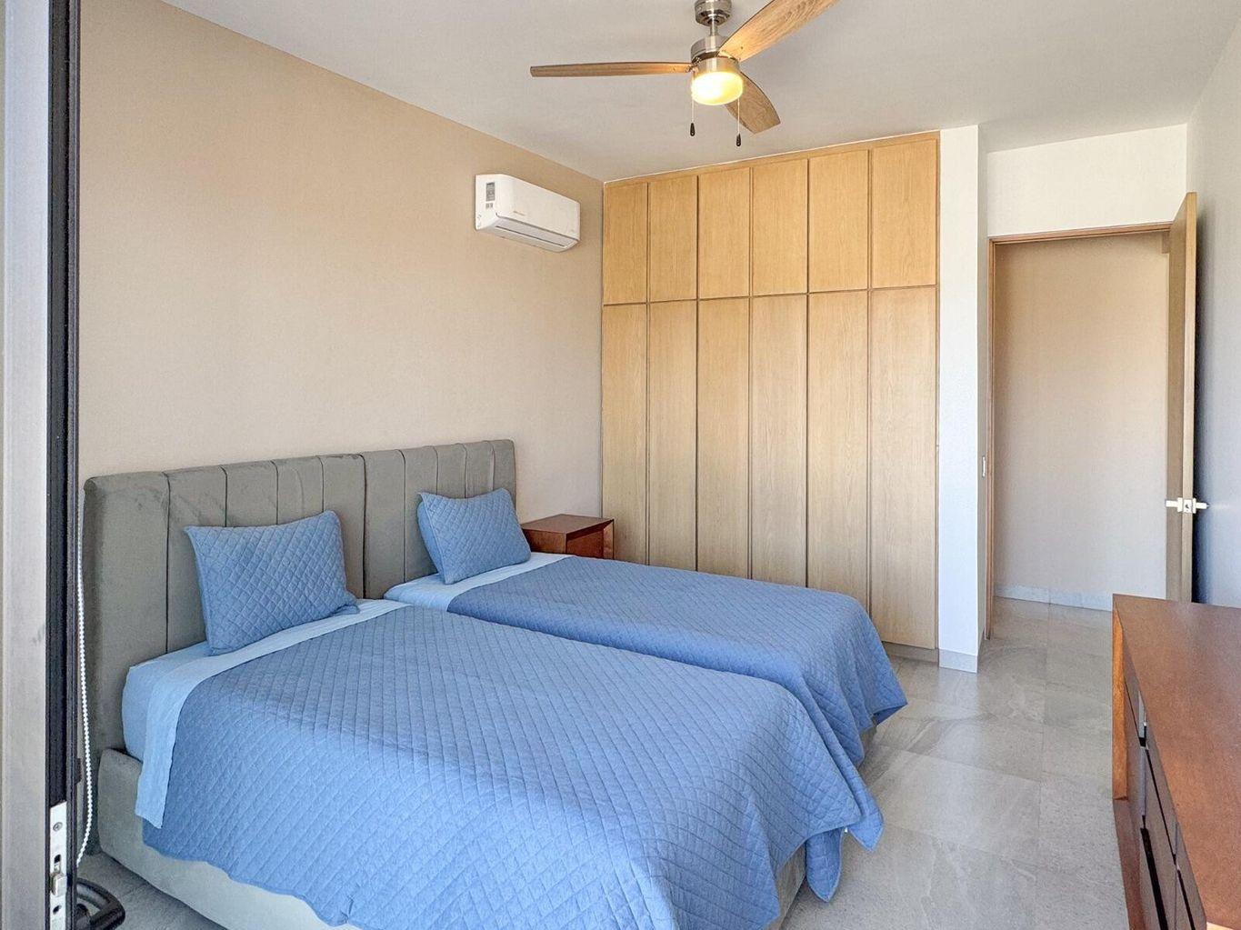 Exceptional condominium located in Miro Los Cabos. .Two generously sized bedrooms, each featuring built-in closets, air conditioning, and ceiling fans to ensure a cool and comfortable atmosphere. Dinning equipped with air conditioning and a ceiling fan, providing an inviting area for relaxation and entertainment. Fully equipped kitchen,
