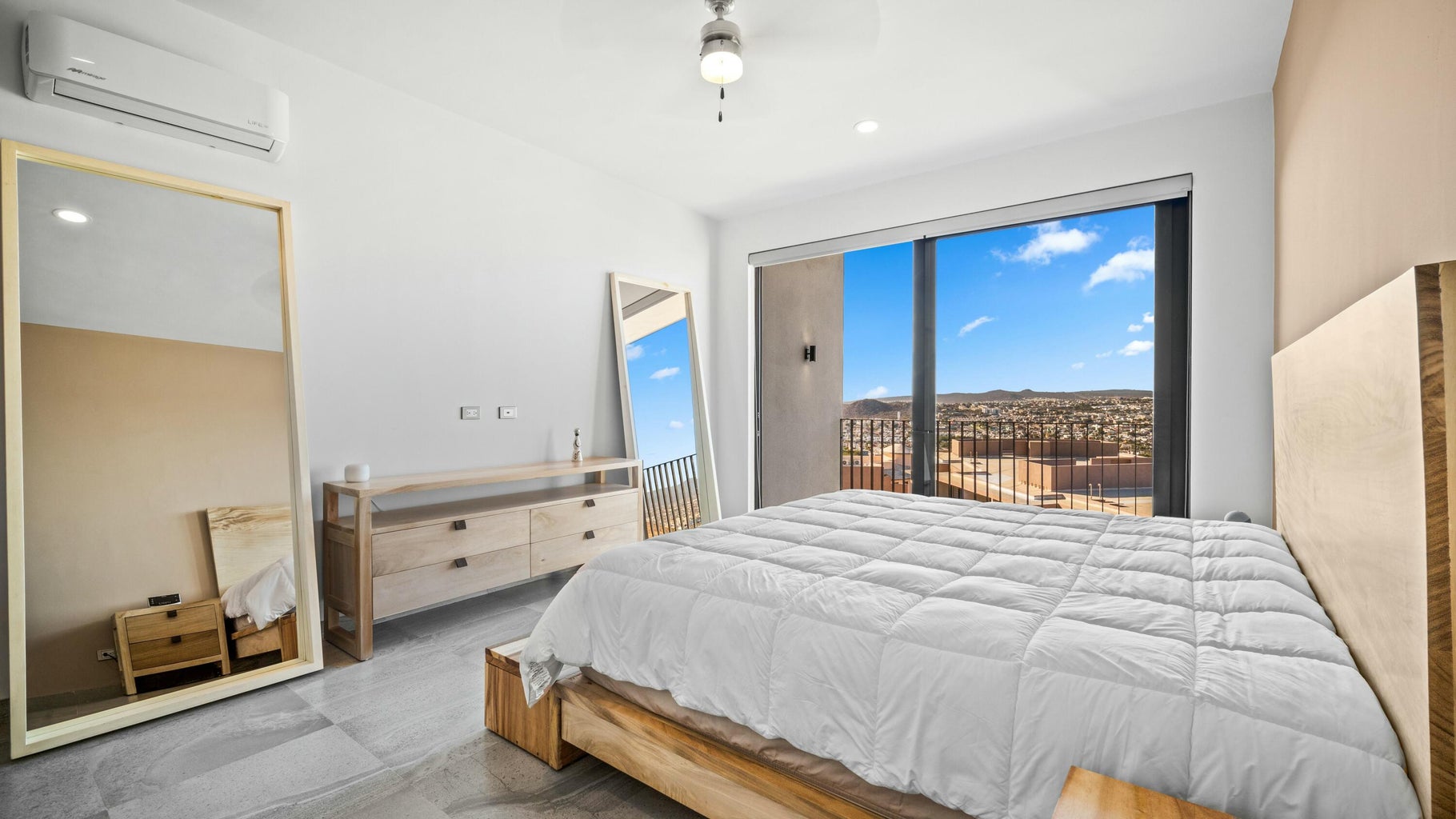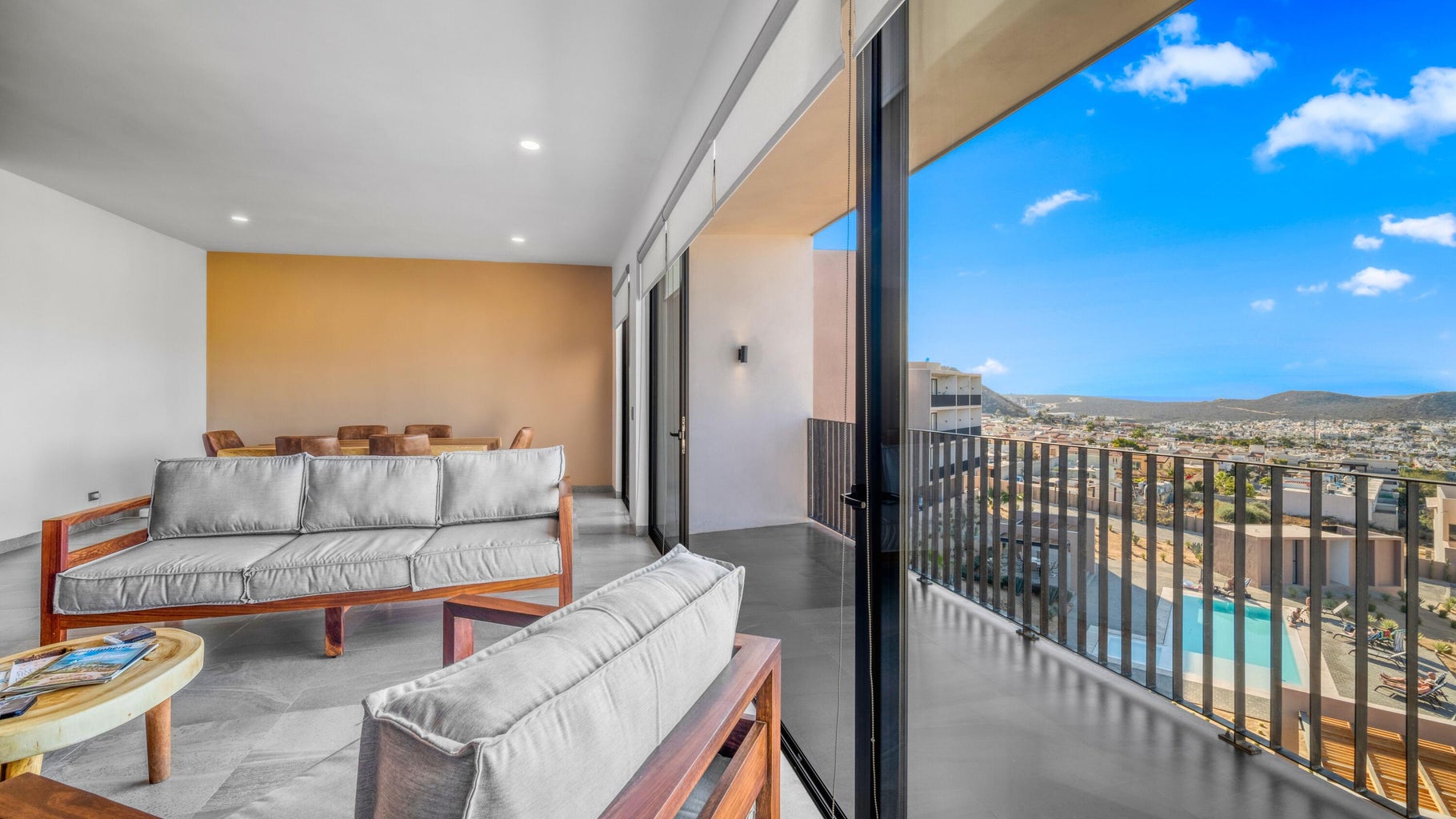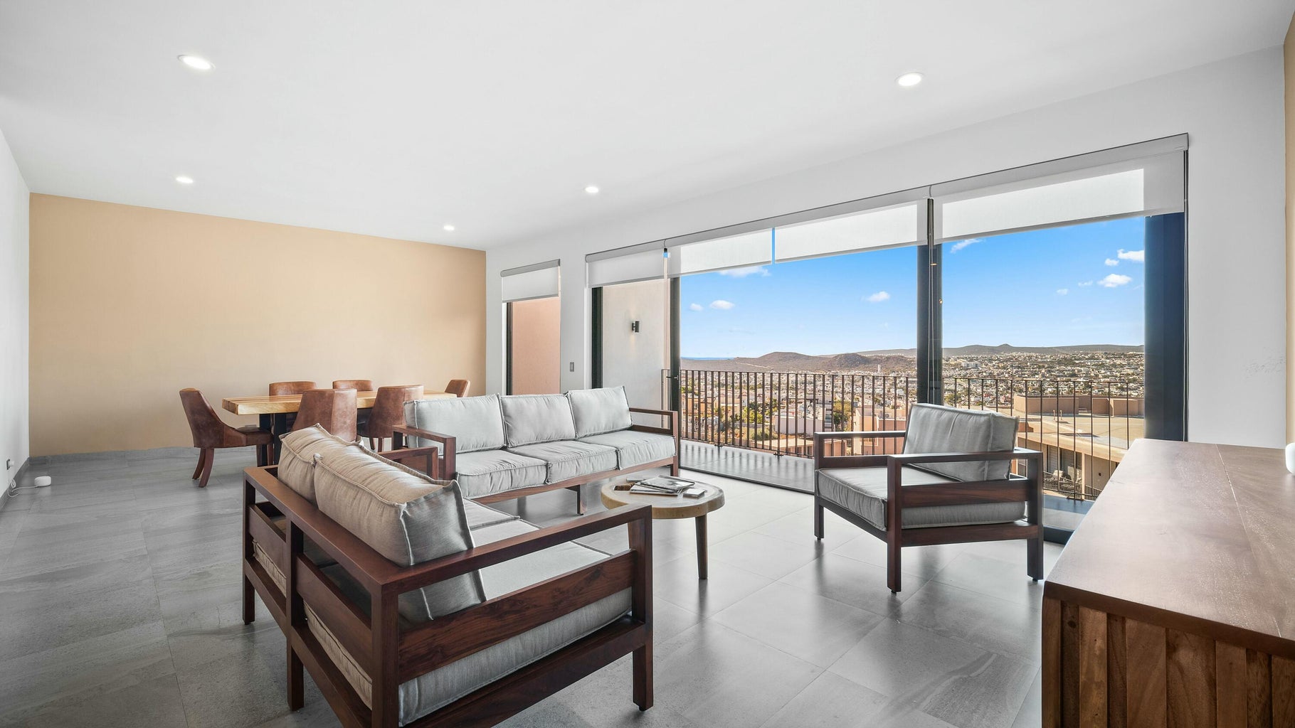 Best Views in all of Miro from the top floor of Tower 5 (Lienzo). This generously sized 2BD/2BA condo faces west with local, pacific ocean and soon to be golf course views from the 2nd course at Quivira. Enjoy beautiful sunset views from one of three separate balconies. Building 5 has only a total of 6 units (2 on each floor) in the building, so enjoy the top floor with only 1 neighbor. This condo also comes with 2 parking spaces. Last but not least, you have a seperate 100 sq. ft. locked storage area right outside the front door (the only one on the floor) with plenty of storage room. Low HOA at $210/Month. The Bodega (9.34 m2) with separate title is not calculated into the meters squared. The taxes above include the condo and storage area.