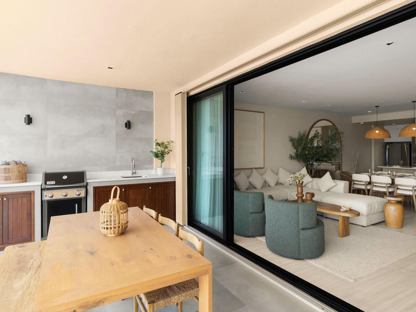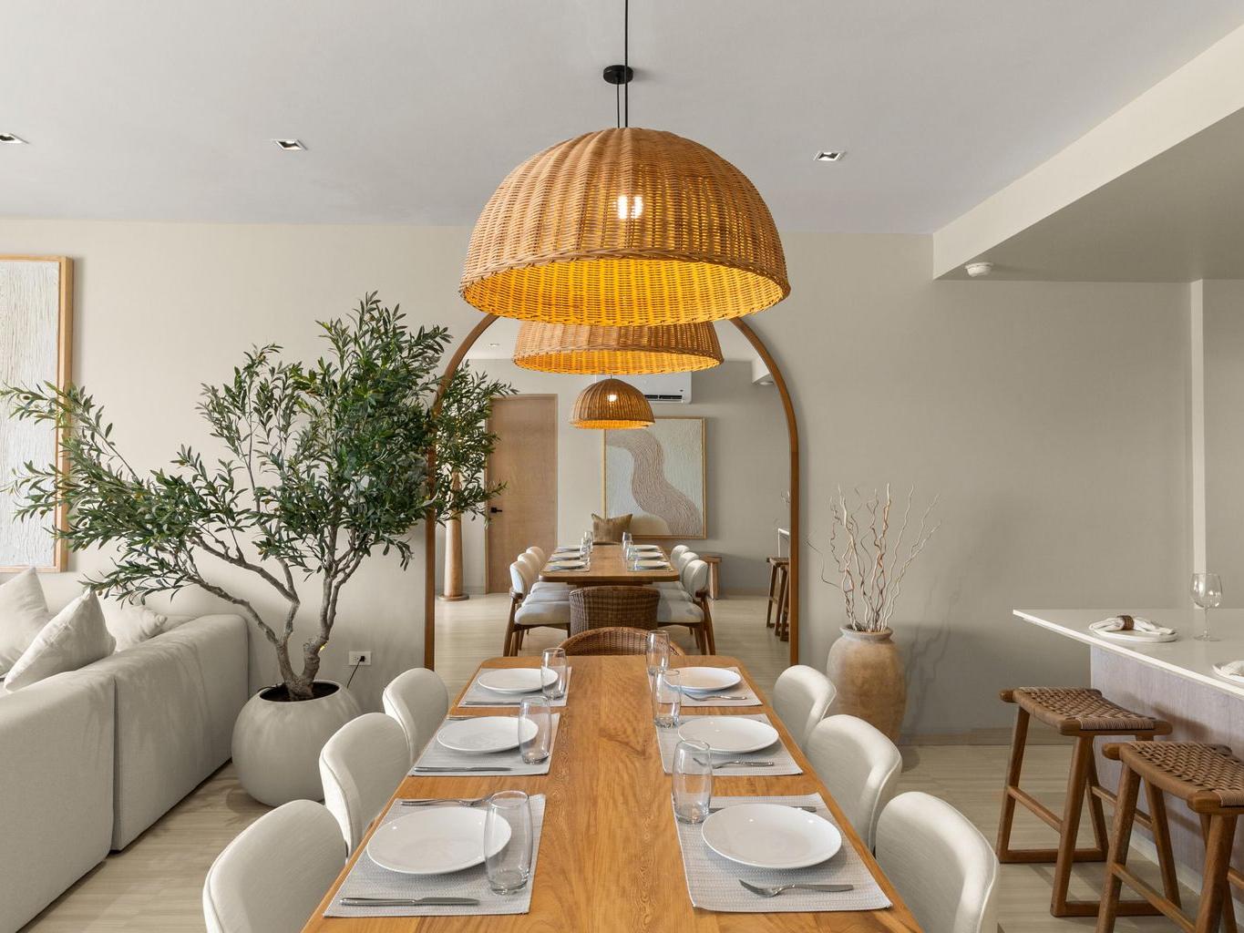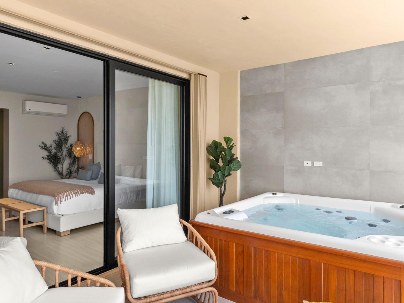 Enjoy sweeping ocean views from this fifth-floor condo with 3 bedrooms and 3.5 bathrooms. The open layout is filled with natural light and styled in a modern bohemian look with clean lines and soft neutral tones. A private terrace hot tub and bbq are perfect for relaxing or entertaining. The kitchen has elegant quartz countertops, and the building features solar panels, filtered drinking water, and A/C with air purification. Amenities include a heated pool, jacuzzi, sauna, gym, clubhouse, courts, beach access, farmers market, and K-12 school.