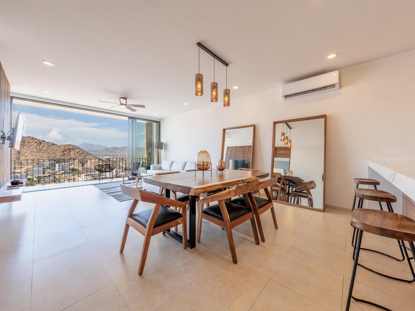 Exceptional investment opportunity in one of Cabo's most sought-after gated communities. This 2-bedroom, 2-bathroom condo offers strong rental appeal with commanding ocean and mountain views, and secure underground parking. The property is fully equipped with stainless steel appliances and features premium upgrades, including an enhanced kitchen island, and high end furniture—ideal for attracting high-end short-term or long-term tenants. Located within walking distance to the Marina, top-rated restaurants, cafes, and shopping, this unit combines prime location with lifestyle appeal. Ownership in Pedregal also includes access to exclusive amenities such as a private beach, tennis and pickleball courts, and a popular organic market.
