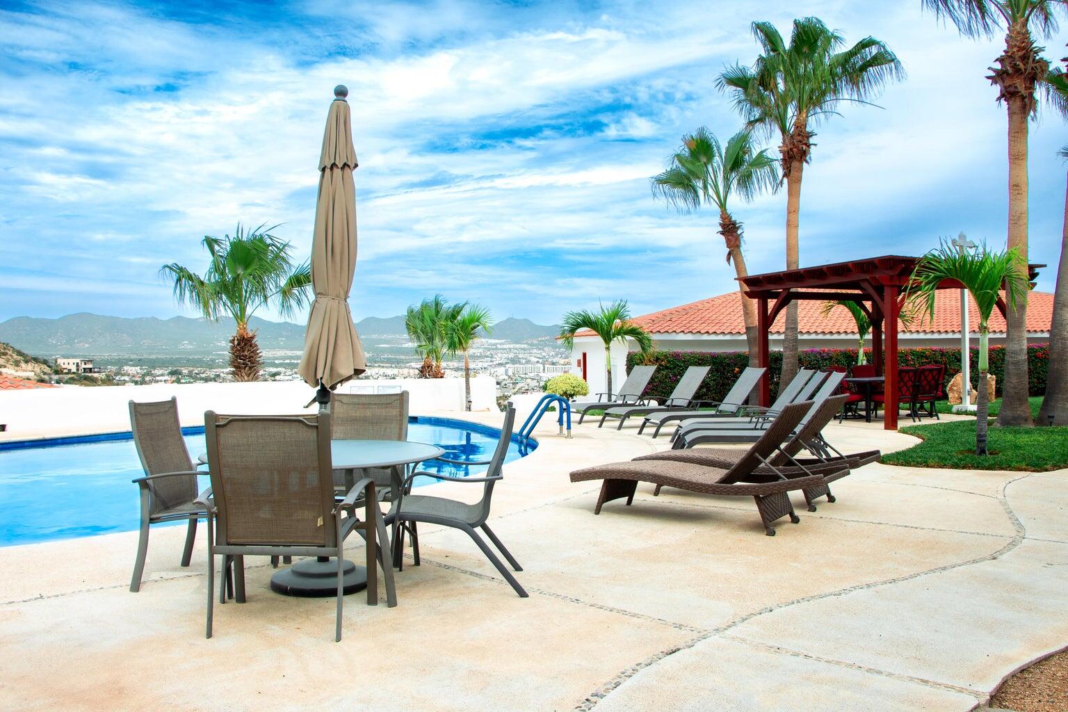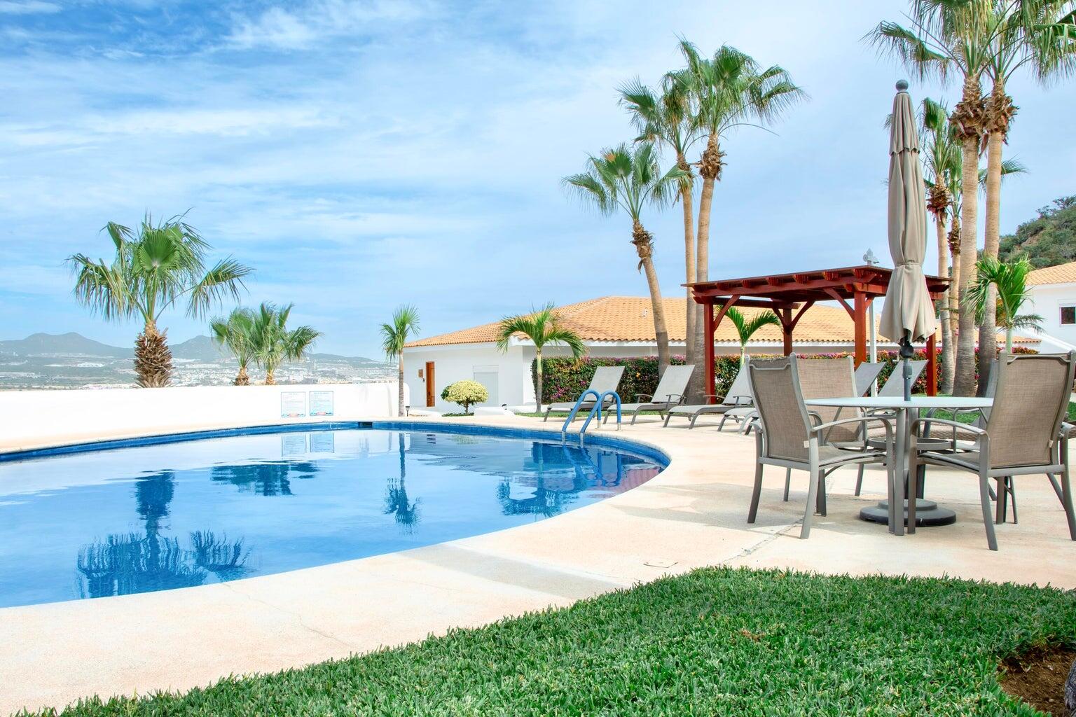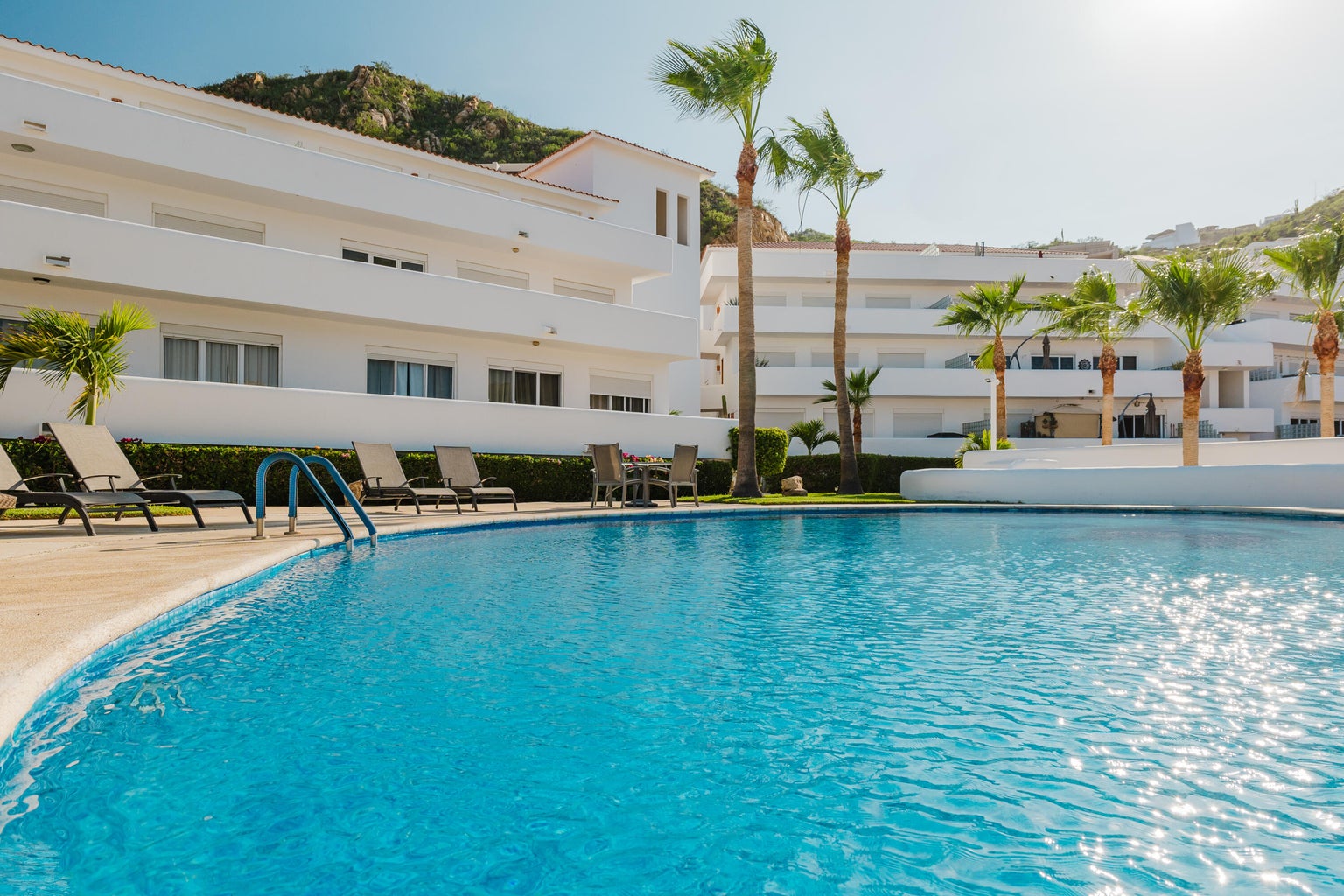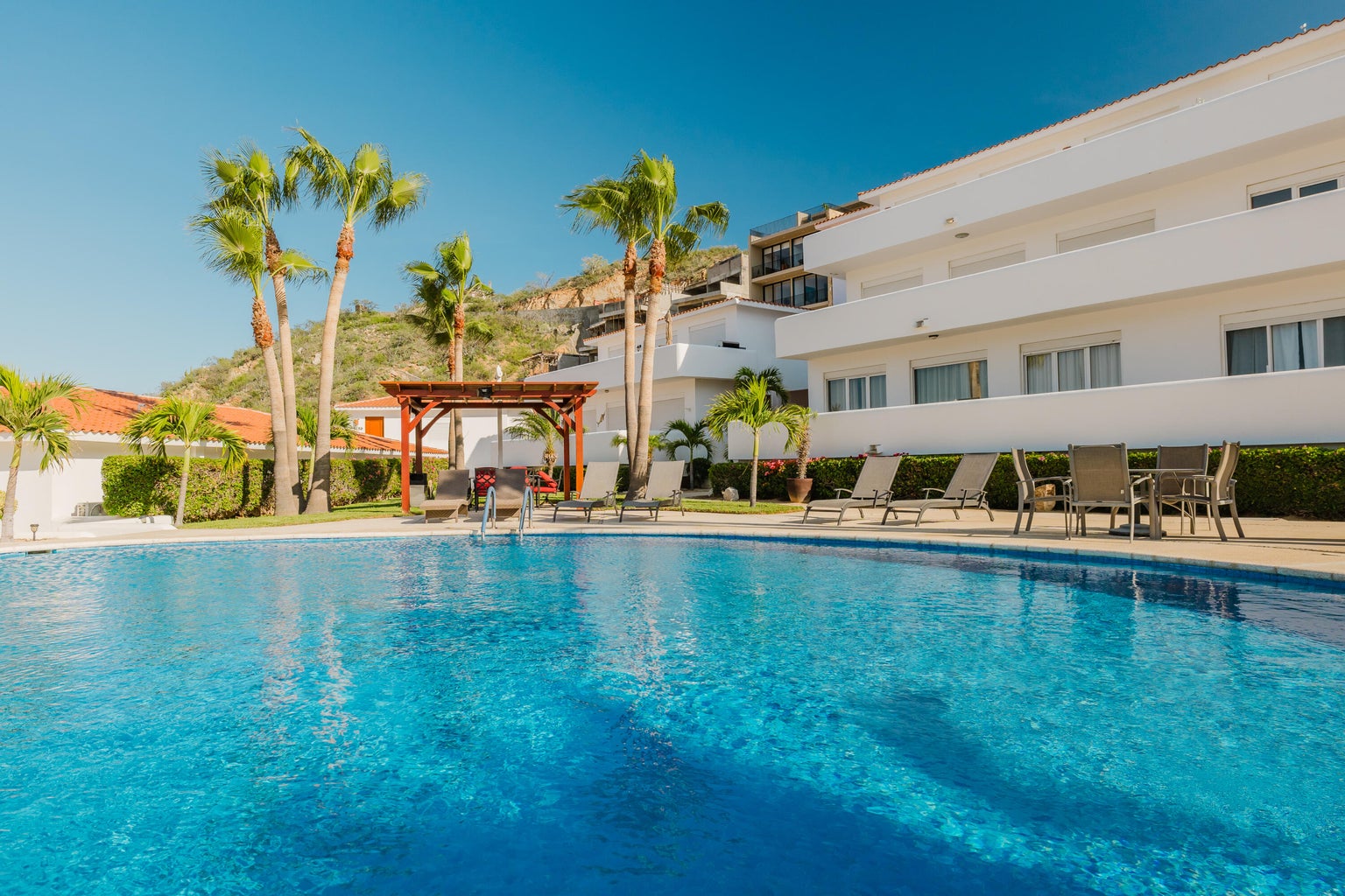 Discover luxury living in Pedregal's renowned community. This 2-bedroom, 2-bathroom unit has a proven track record as a successful short-term rental and offers a blank canvas for your personal touch. It features a spacious terrace with city and partial ocean views, an assigned garage, and a private entrance for added privacy. Enjoy community amenities including security, a pool, and close proximity to Medano Beach. The unit is connected to the Pedregal desalination plant for sustainable water use. It comes with three TVs, kitchen appliances, and utensils. This is a great investment opportunity in a developing area with potential for appreciation. Your ideal home awaits.