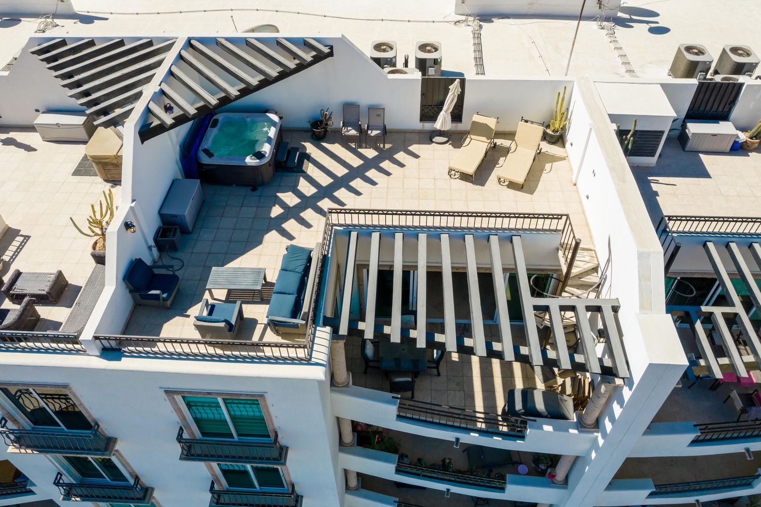 Experience luxury living in the heart of Cabo San Lucas with this exceptional 2-bedroom, 2-bathroom penthouse, featuring a private rooftop terrace with a jacuzzi, lounge chairs, and a sitting area overlooking the iconic Medano Beach. Fully furnished and equipped, this turnkey property is ready for you to move in or start generating rental income immediately.
