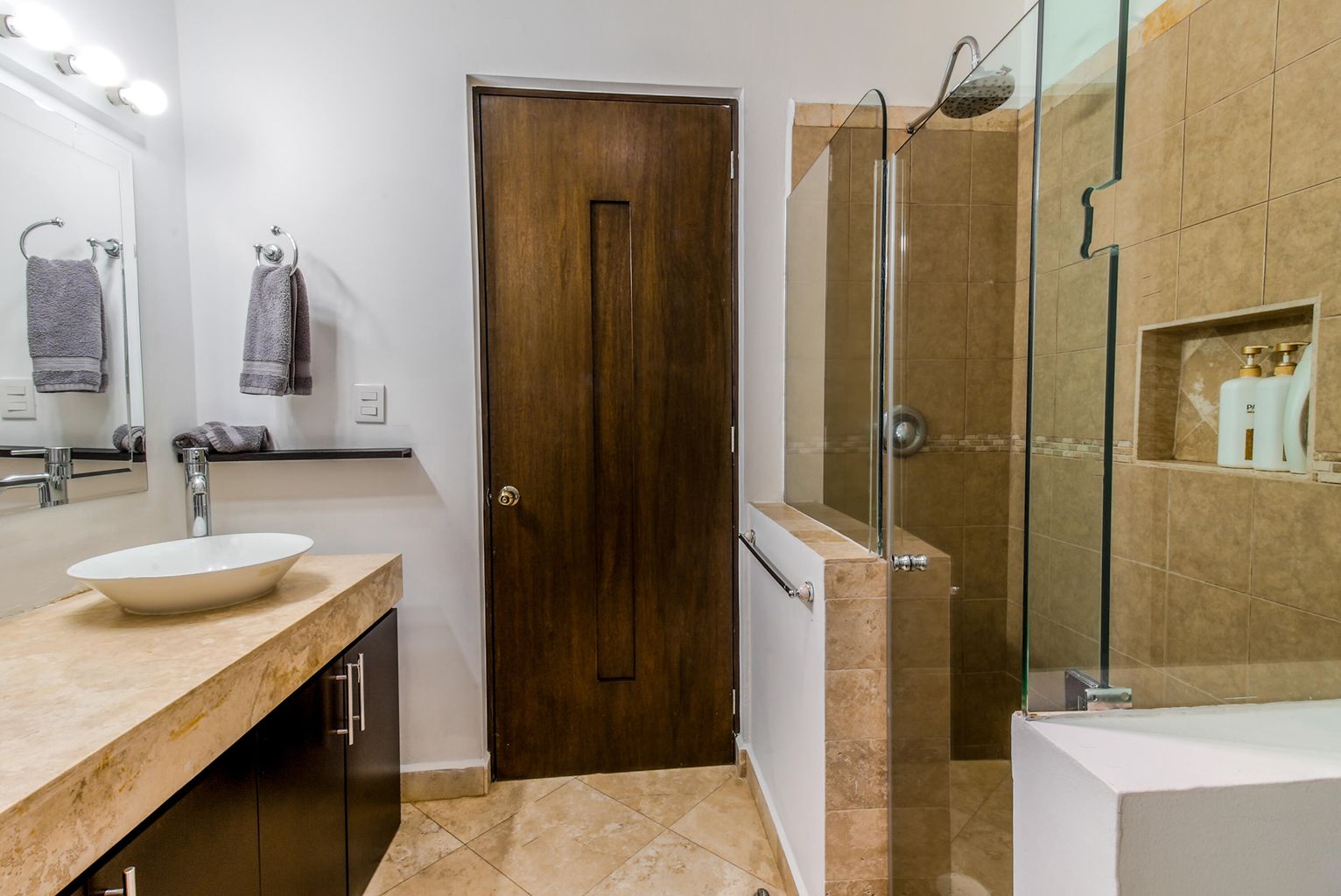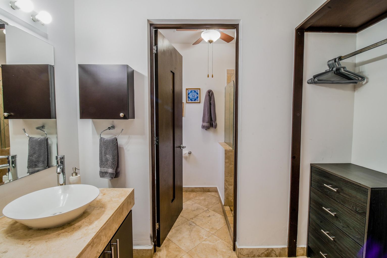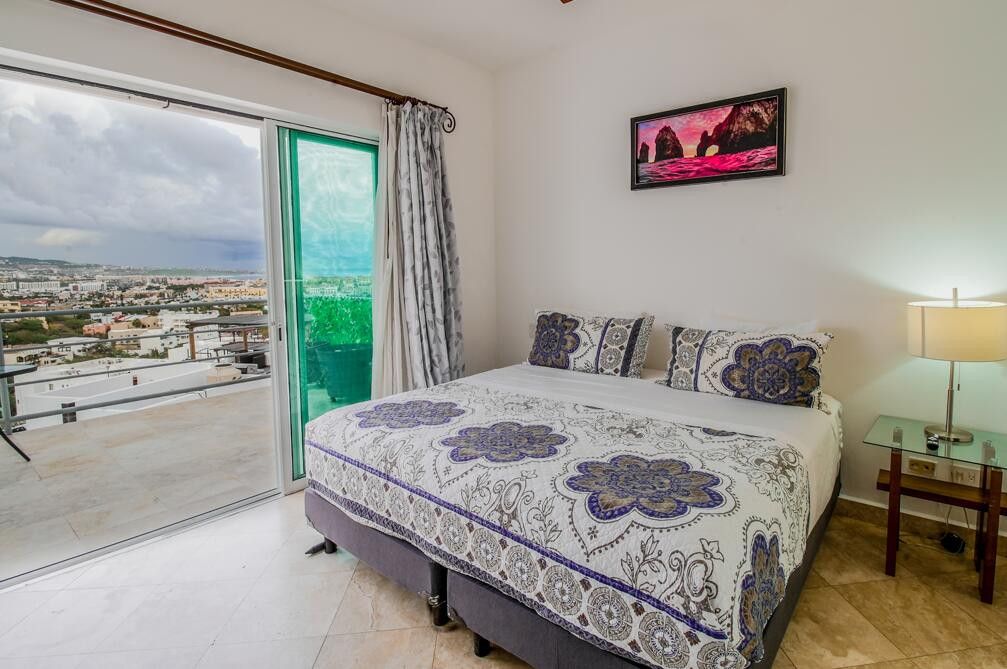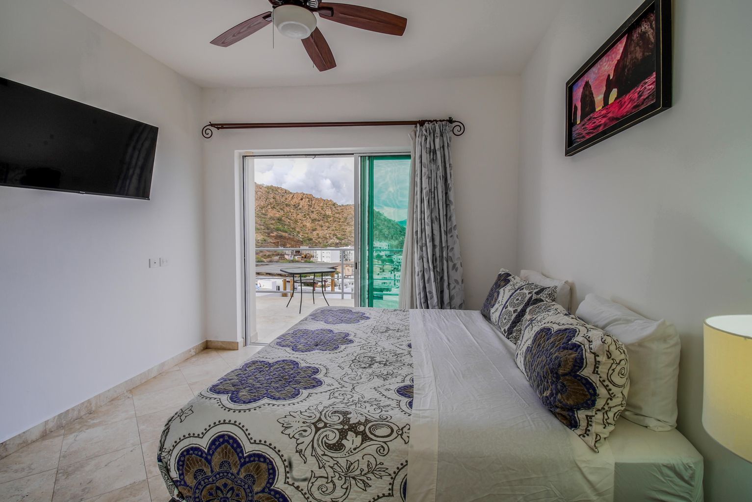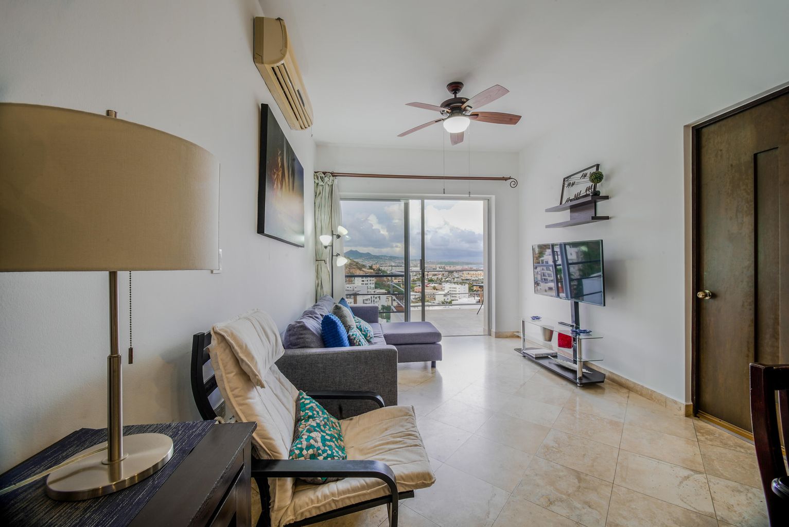 Priced to sell fast!!! Oceanview two bedroom two bathroom condo at San Charbel Cabo San Lucas. The condo is located on the second floor of the complex southern building, giving great panoramic ocean and city views from both bedrooms and from the ample terrace. The condo has beautiful marble floors throughout the condo, wooden cabinets, closets and doors, AC mini splits and fans in each room. Primary bedroom with direct access to terrace, king size bed, tv, enclosed bathroom with closet and marble tiles finishes; the spacious living/kitchen area with access to terrace through sliding window doors, living with tv and couch, the L shape kitchen is equipped with granite countertops, marble splash tiles, 4 seat dine table, buffet with mirror plus, fridge, range, hood, microwave, ...