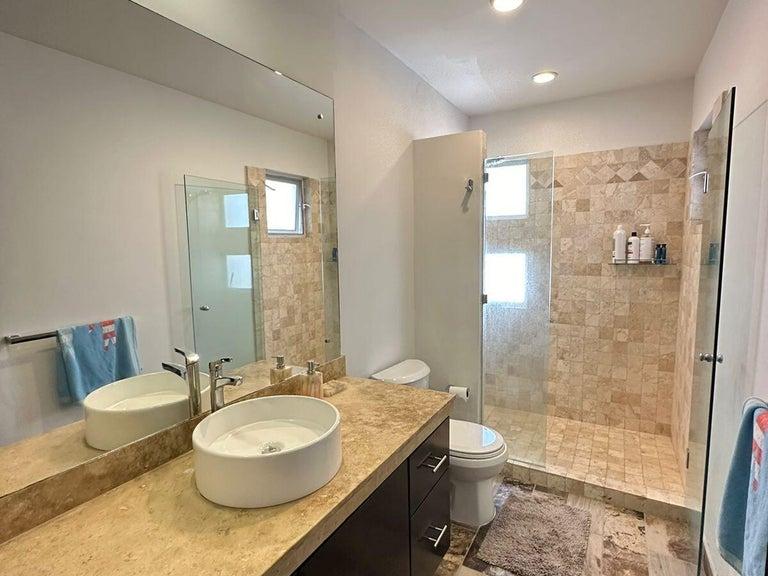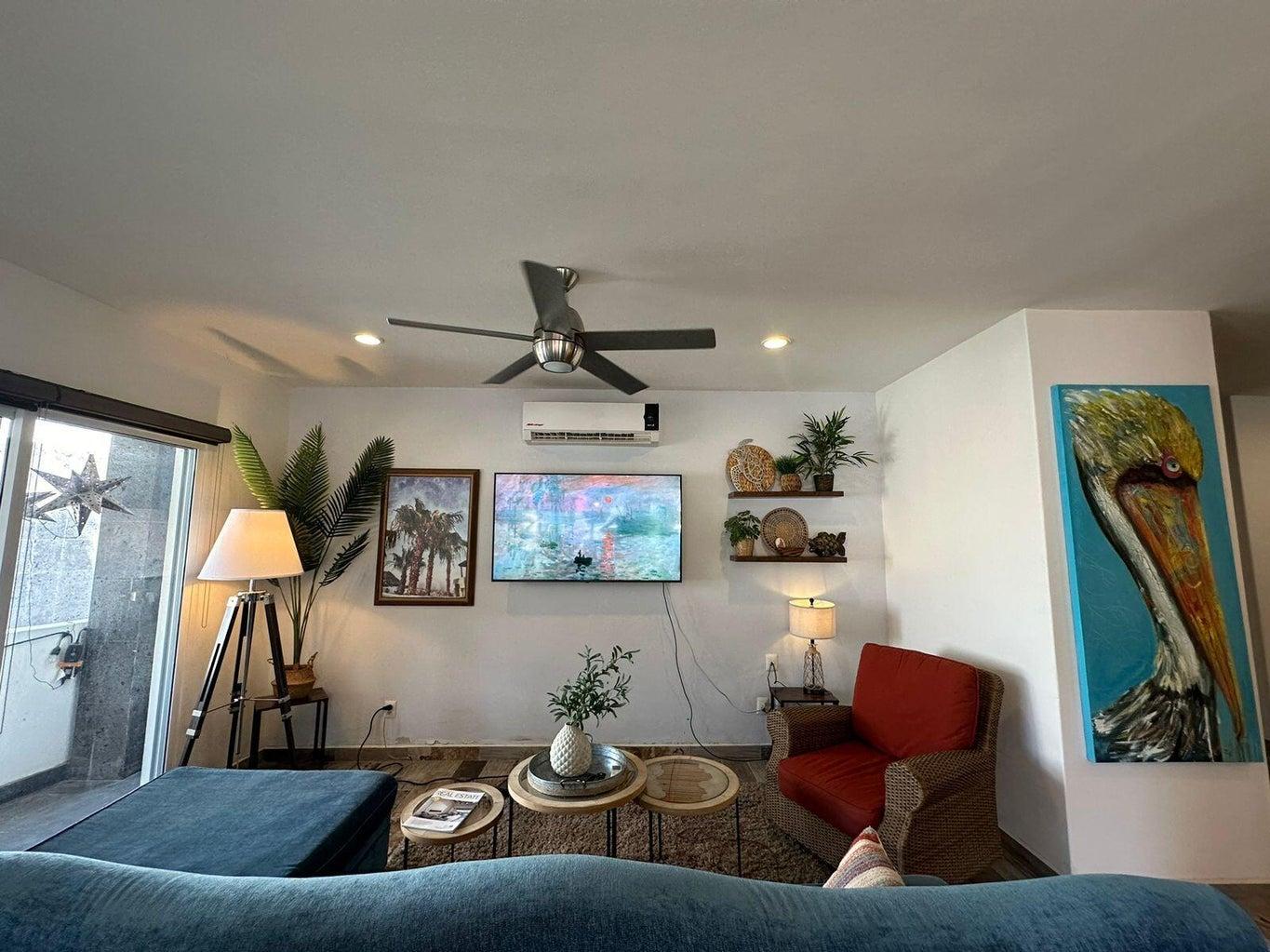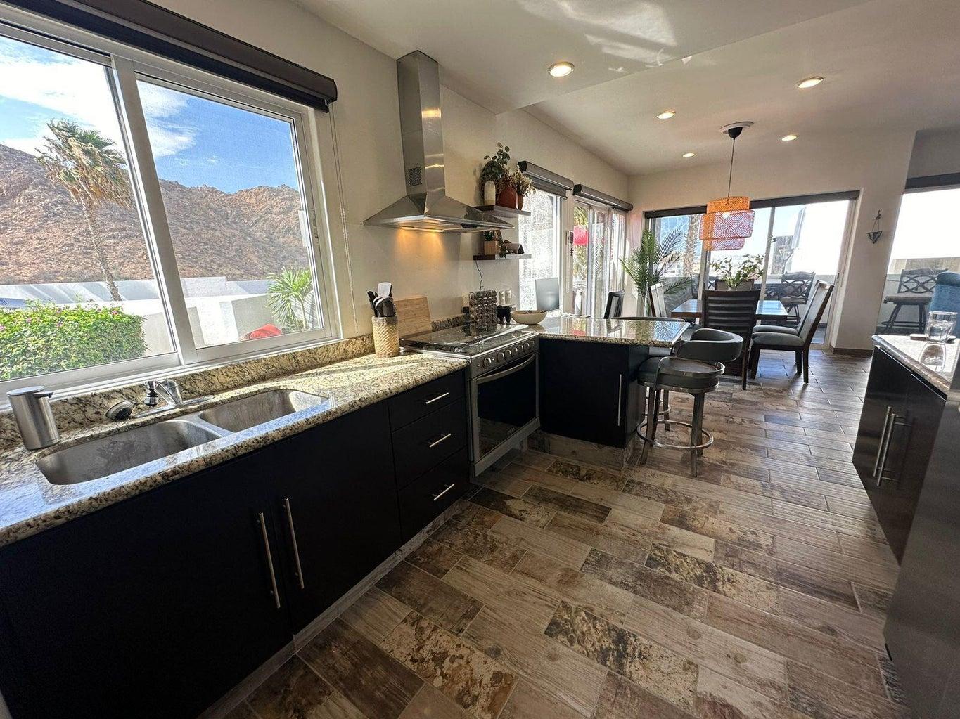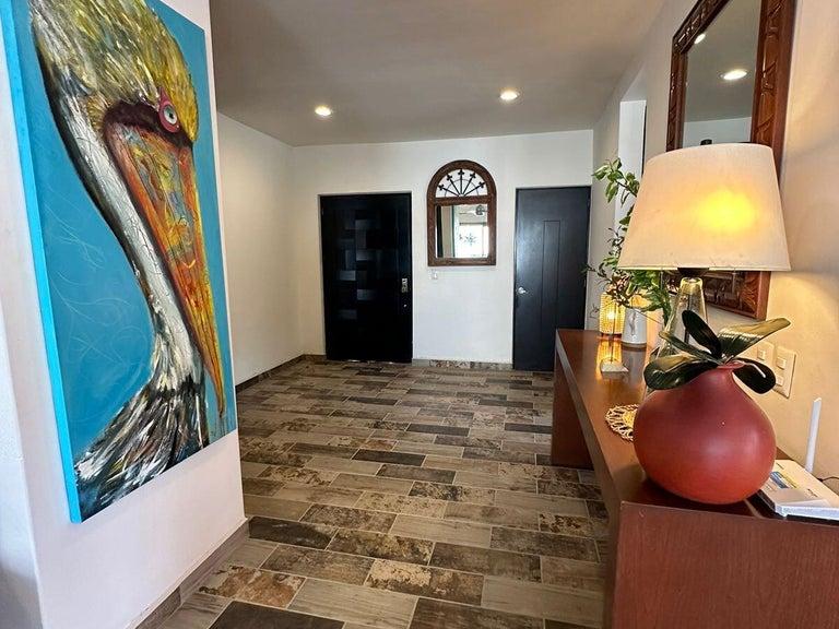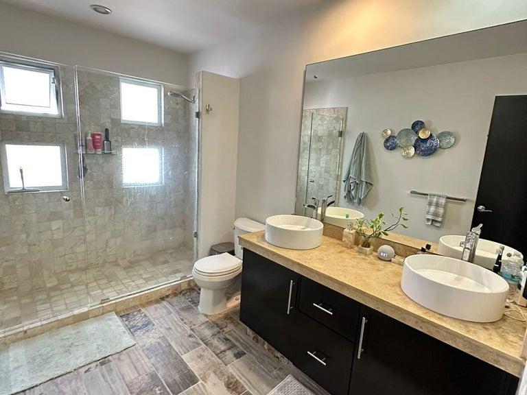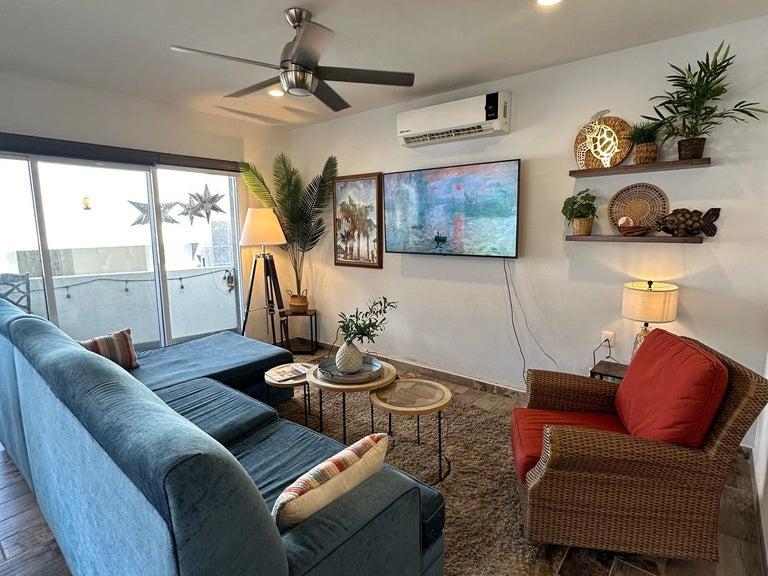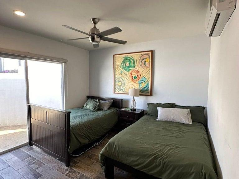 Welcome to luxurious living in San Charbel II, a high-end complex in the Sunset neighborhood of Cabo San Lucas. This beautifully furnished, single-level duplex offers 2 bedrooms, 3 bathrooms, and partial ocean views. Enjoy the comfort of multiple artificial turf yards and the convenience of 2 parking stalls. The ground-level unit is perfect for easy access and is pet friendly. The small gated community features 24/7 security, an infinity pool and gym with a gorgeous view, a turfed children's play area, and a putting green, all just a short walk to the marina