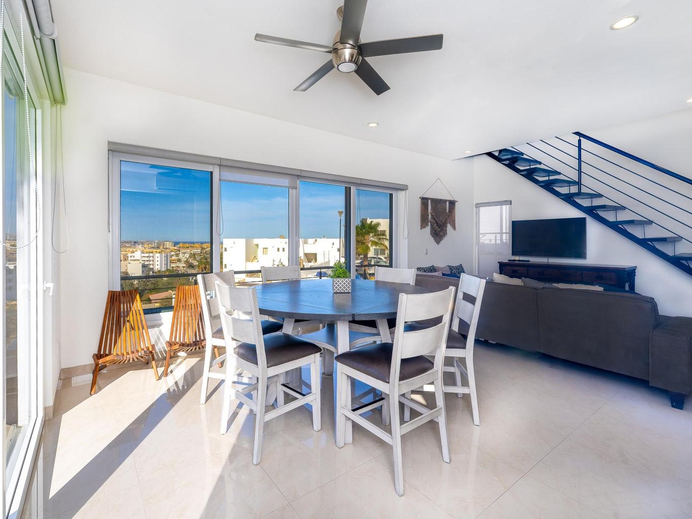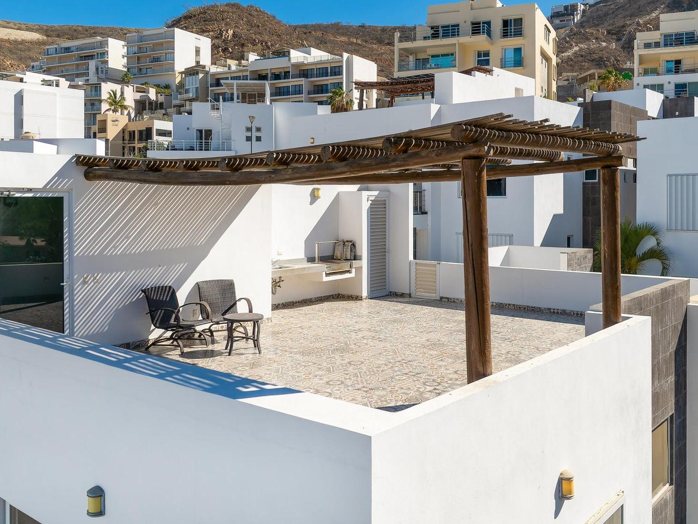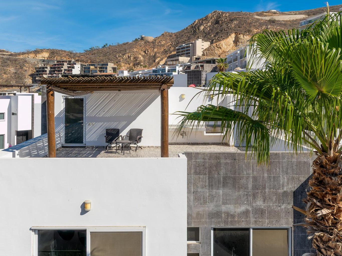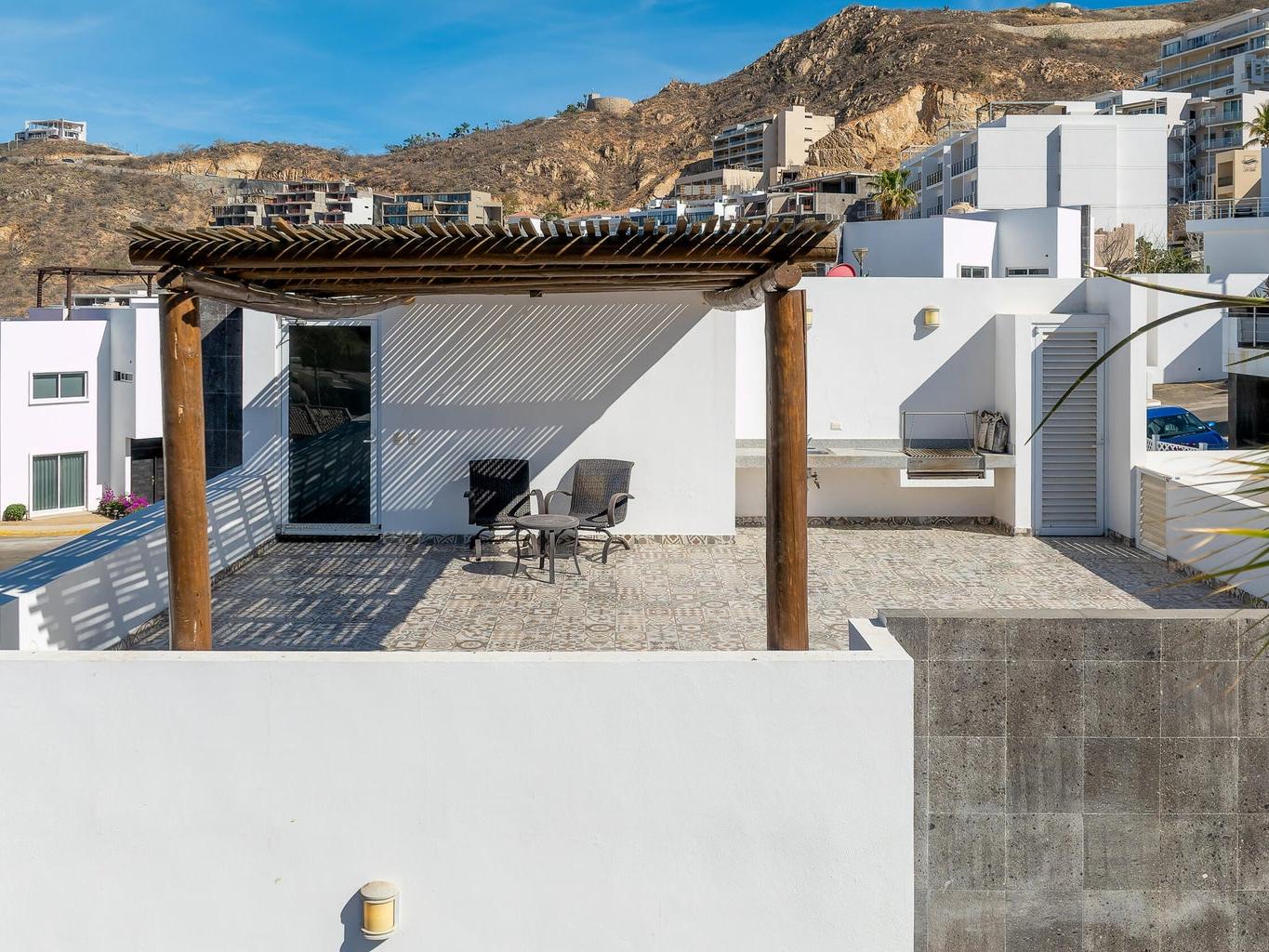 In this apartment, you'll be able to live relaxed and comfortable, with a wonderful view from your dining room and from the rooftop terrace, where you'll see the sunrise EVERY DAY—an unparalleled experience! You can also enjoy a delicious BBQ at sunset with your friends and family, where the lights of the Cabo San Lucas port will be the backdrop. Your own space for beautiful gatherings.