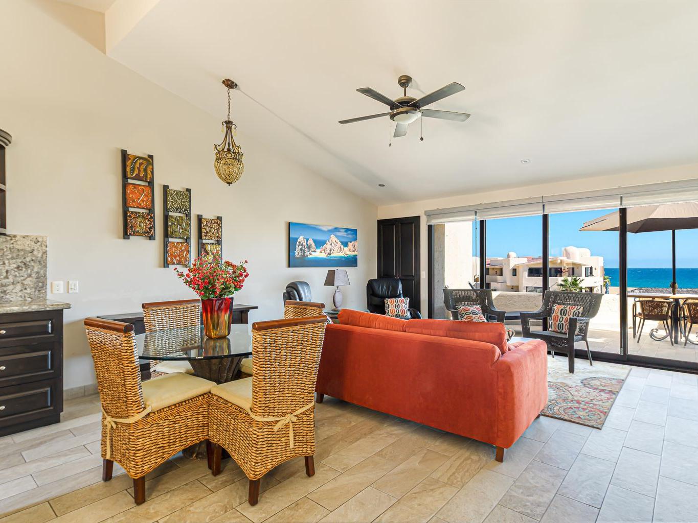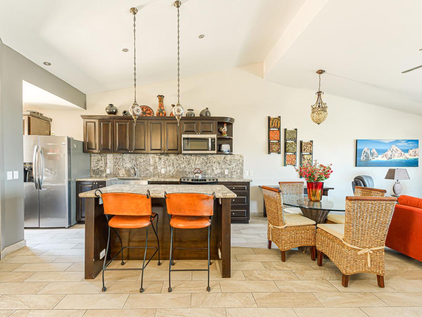 Located in the vibrant destination of Cabo San Lucas, Terrasol 230 offers a unique opportunity for those seeking to invest in a property that perfectly captures the essence of coastal living. With a prime location overlooking the Pacific Ocean and just steps away from the beach, providing a tranquil retreat amidst the bustling energy of downtown. Fully renovated penthouse with water views, overlooking the pool & palapa. This unit is a great 2 BR 2BA with vaulted ceilings throughout. Creating a luxurious living space that is both comfortable and inviting.