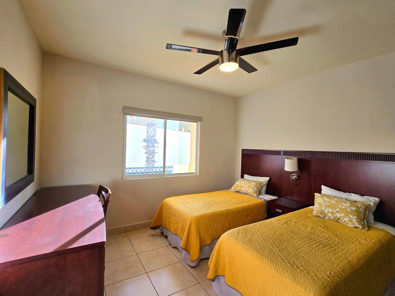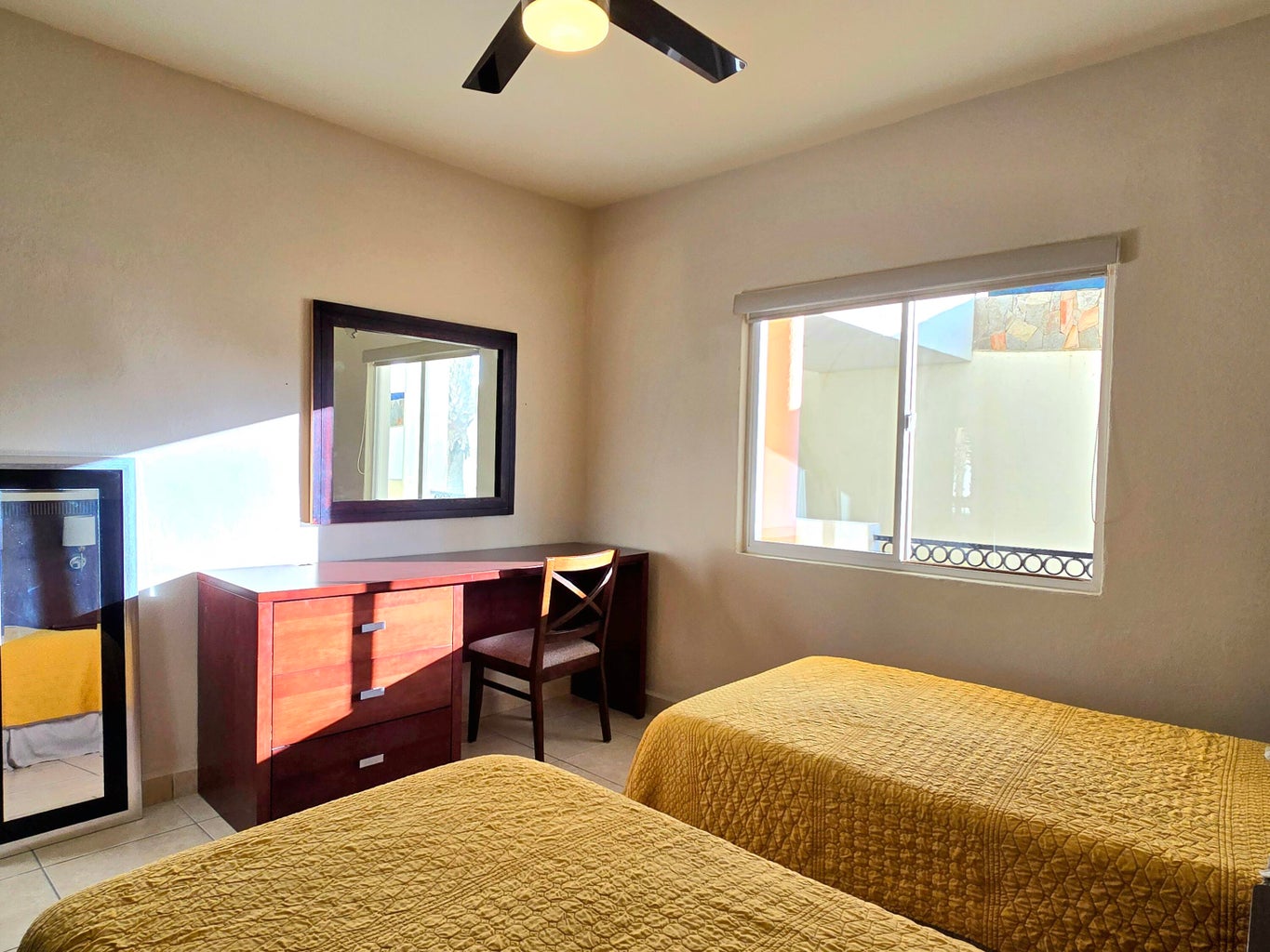 This stunning condo is located in one of Cabo San Lucas' most tranquil and sought-after developments. Just 7 minutes from downtown, it offers breathtaking sunset views and a serene atmosphere. The condo features 2 bedrooms, 1 bathroom, a fully equipped kitchen, and comes fully furnished for your convenience. With air conditioning, ceiling fans, and 24/7 security, this property ensures comfort and peace of mind. Residents also enjoy access to fantastic amenities including pools, palapas, a gym, and bathrooms. Don't miss out on this opportunity to own a piece of paradise in Cabo San Lucas!