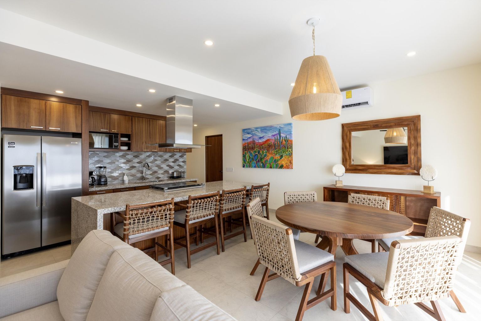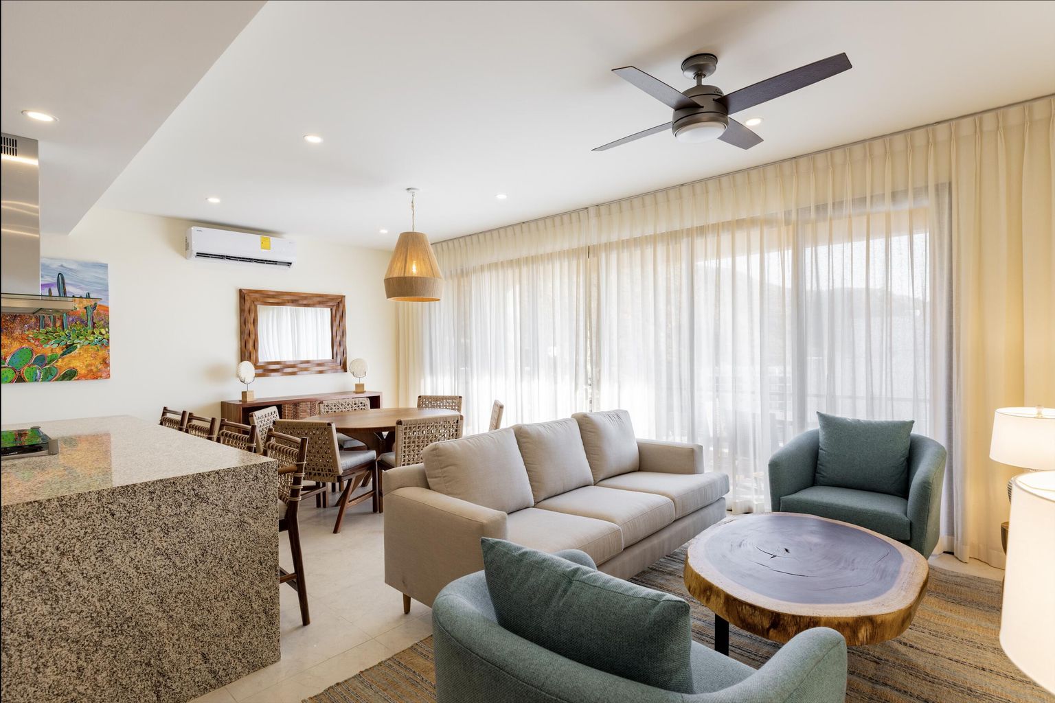 Discover unit 2201 at Vista Mare, a tastefully furnished 3-bedroom, 2-bathroom condo in Cabo San Lucas. This turn-key property spans 1,194 sq ft with a 296 sq ft terrace and includes a 145 sq ft storage space and two dedicated parking spaces. Sophisticated interiors and high-end finishes ensure comfort and style, offering residents stunning ocean views towards the marina—ideal for admiring beautiful sunrises and tranquil evenings. Priced to sell and featuring great rental potential, this condo is an excellent investment, combining luxury living with the benefits of superb community amenities. It's perfect for those seeking a profitable holiday retreat or an elegant permanent residence.