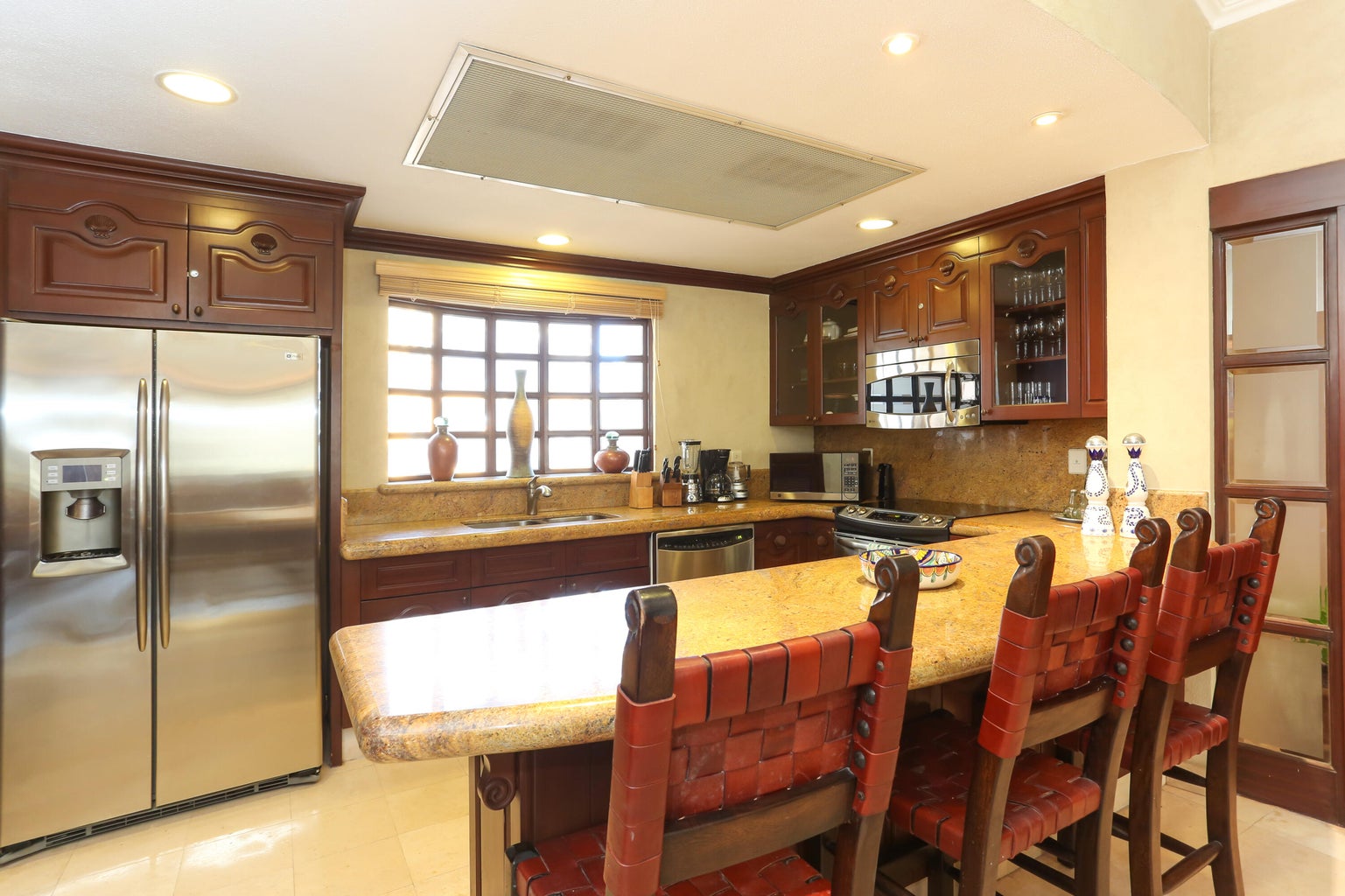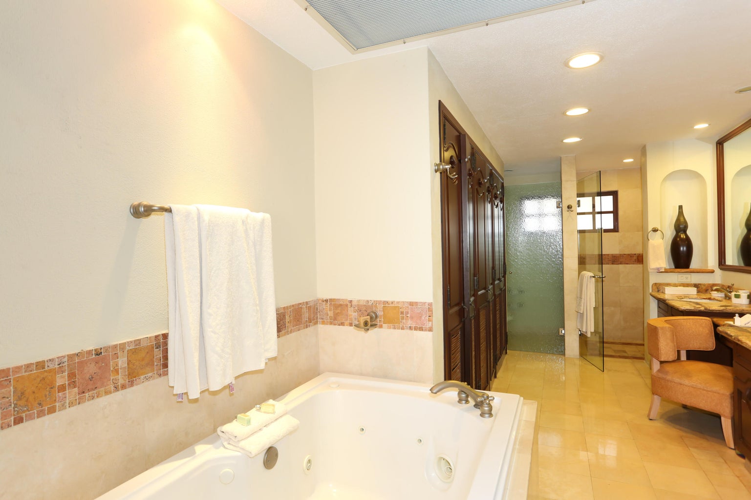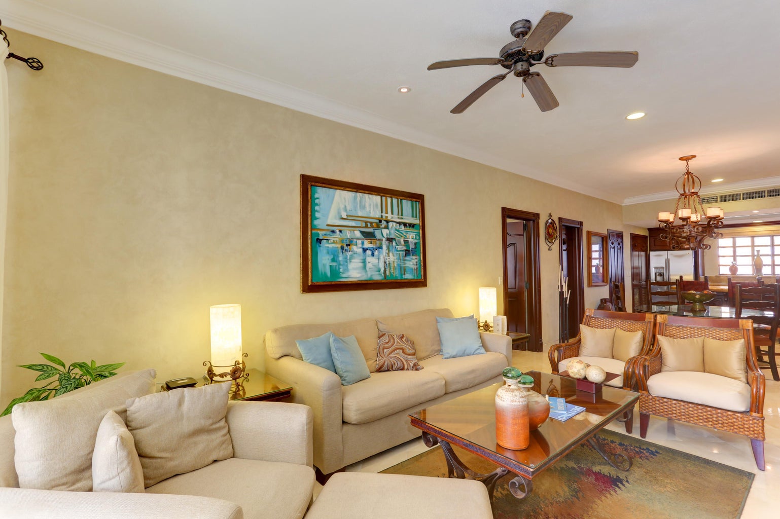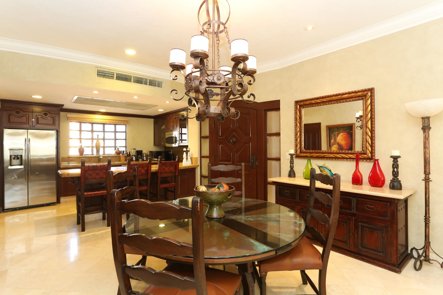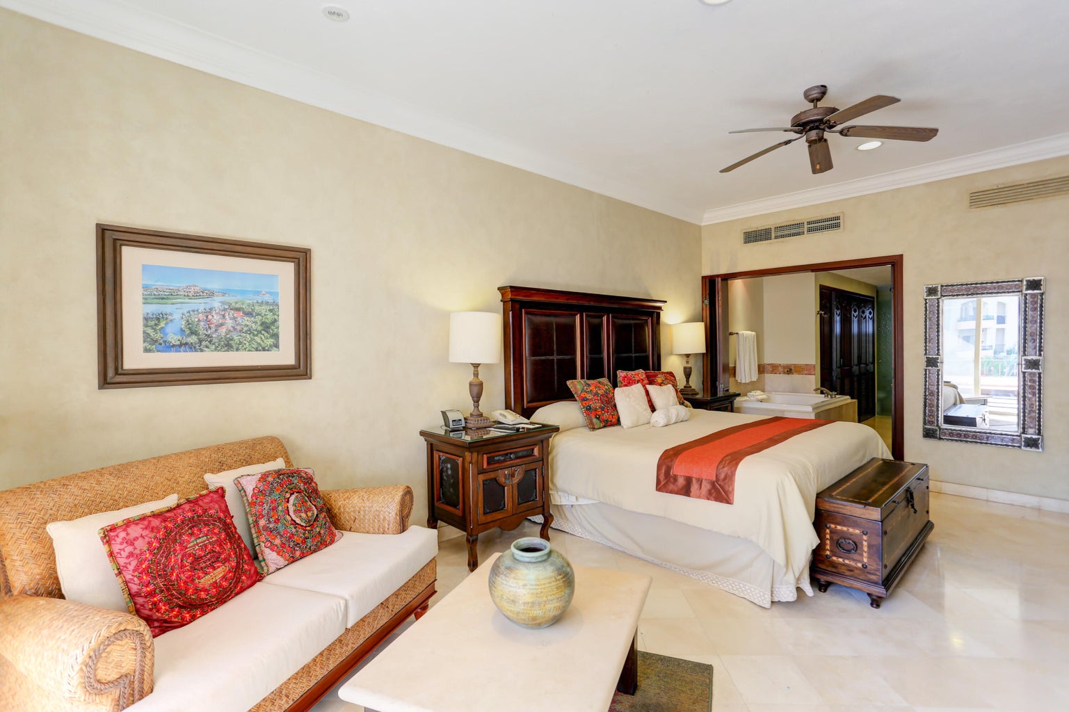Located in Cabo San Lucas, this two-bedroom, three-bathroom oceanfront condominium is part of the Villa La Estancia resort. Villa 1202 is situated on the second floor of the first phase of the second building, offering 1,678.56 square feet of living space and a 484.20 square foot terrace. The terrace provides views of the Sea of Cortez and Land's End.