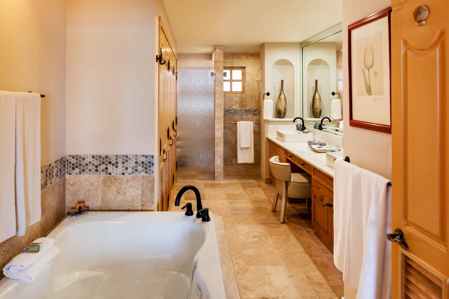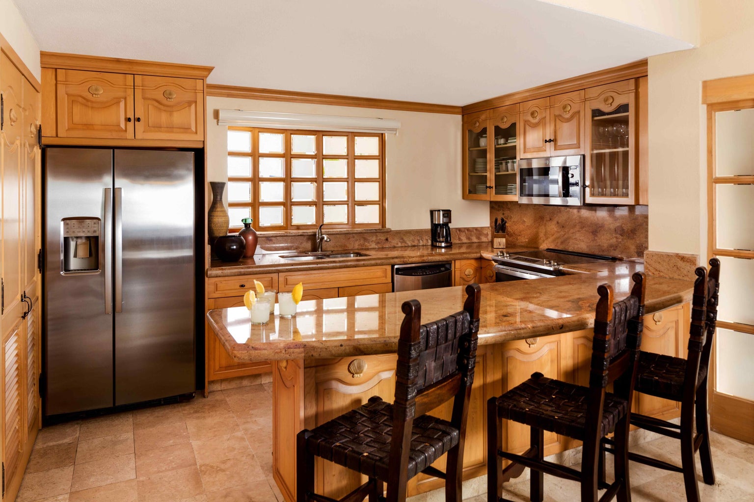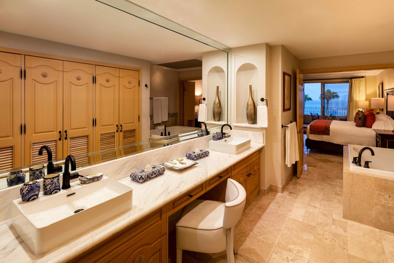 Each room in Villa 3402 is thoughtfully positioned to maximize unobstructed ocean views, creating a tranquil living experience. The beachfront primary suite includes a king-sized bed, dual vanities, a beachfront jetted tub, and direct access to the expansive balcony,
