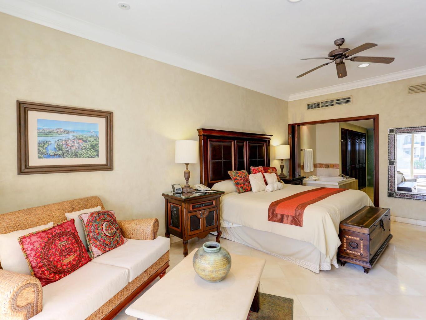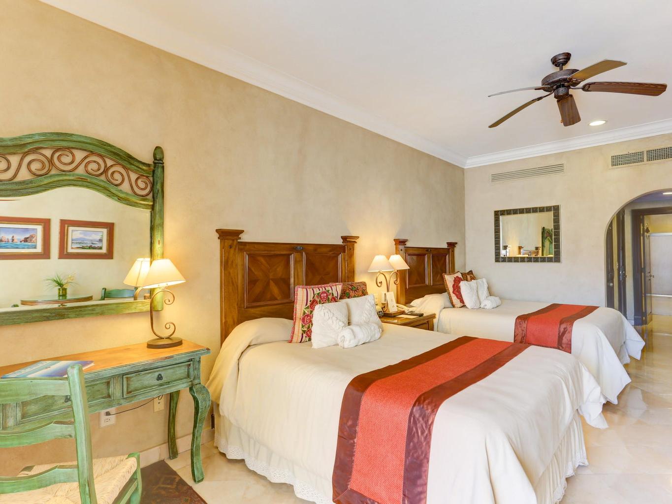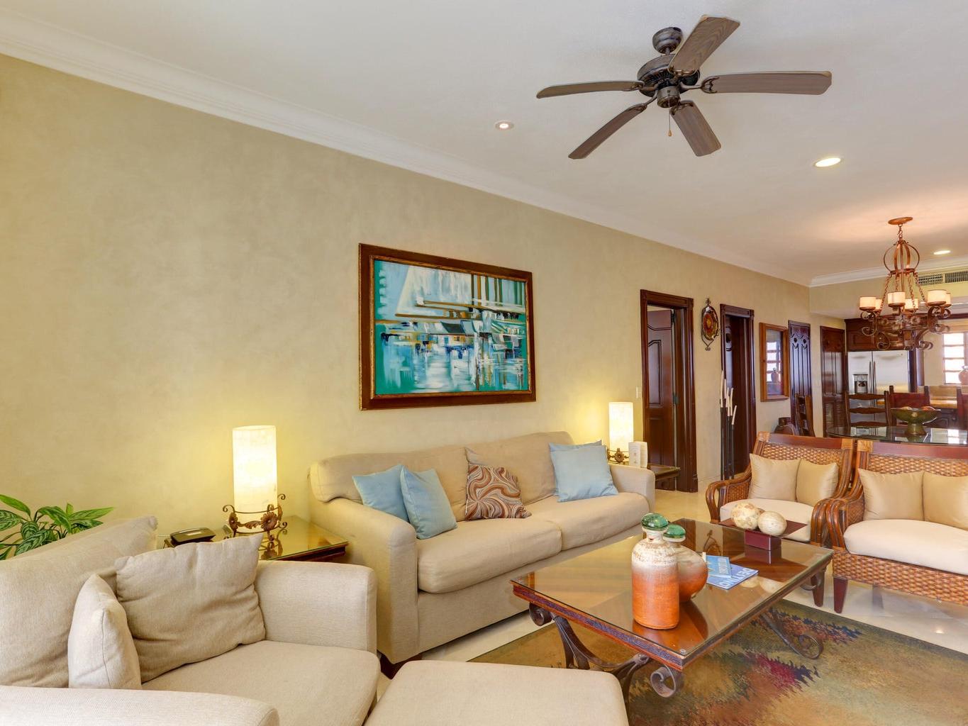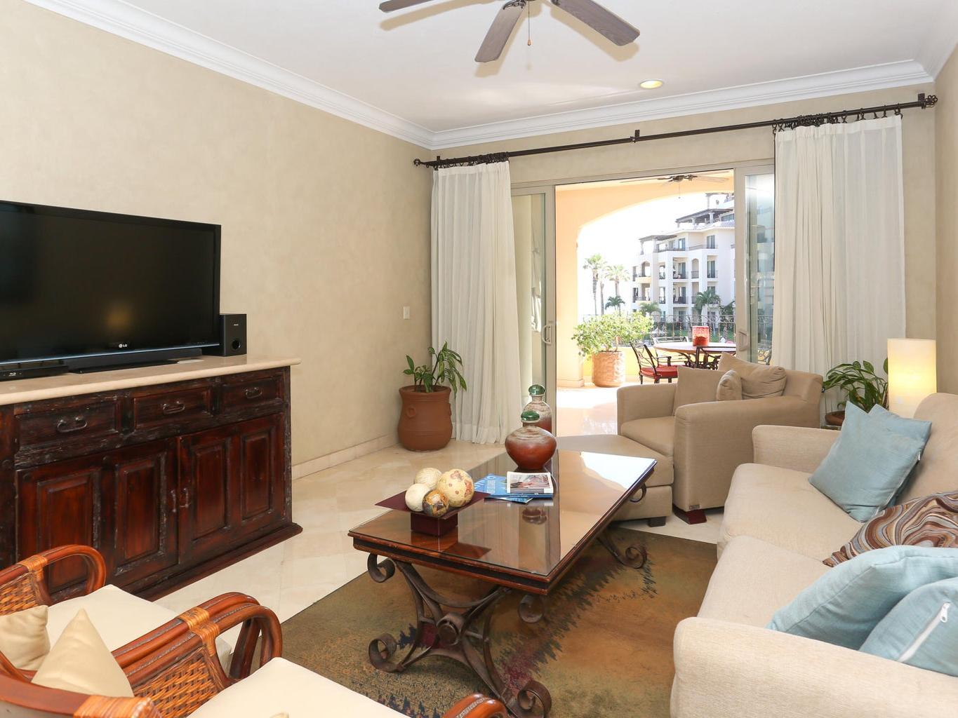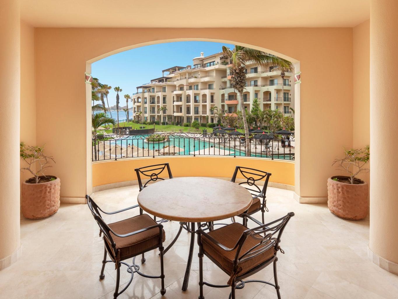 Located in Cabo San Lucas, this two-bedroom, three-bathroom oceanfront condominium is part of the Villa La Estancia resort. Villa 1202 is situated on the second floor of the first phase of the second building, offering 1,678.56 square feet of living space and a 484.20 square foot terrace. The terrace provides views of the Sea of Cortez and Land's End.