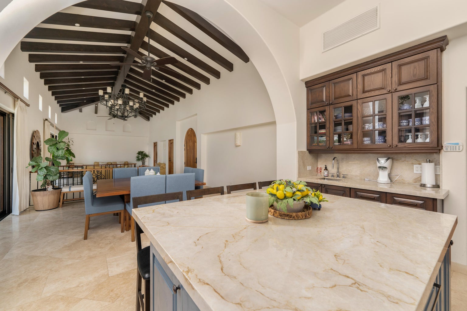 Magnificent oasis in the heart of Cabo San Lucas awaits its new discerning owners! Discover Casa Bonita, a home that was designed to create a comfort and luxurious space, while being in the heart of Cabo! Close to schools, shopping, restaurants and really everything! Perched on a hill overlooking the Pedregal, enjoy the comfortable spaces from the moment you enter the home. Tall cathedral ceilings over the dining room, large chef's kitchen and a sprawling terrace with firepit and cozy seating area to enjoy. An outdoor grill area, and a flex room that can be a family room or fourth bedroom make the first floor layout ideal for family living. Lower level 3 large bedrooms, each with full ensuites. Quality in every corner of this home and NO HOA, discover this Gem!