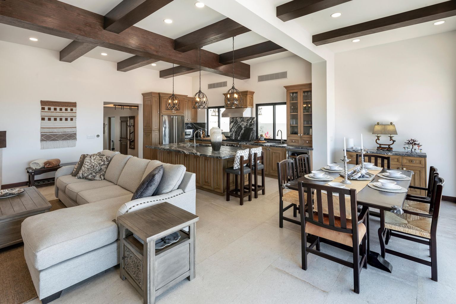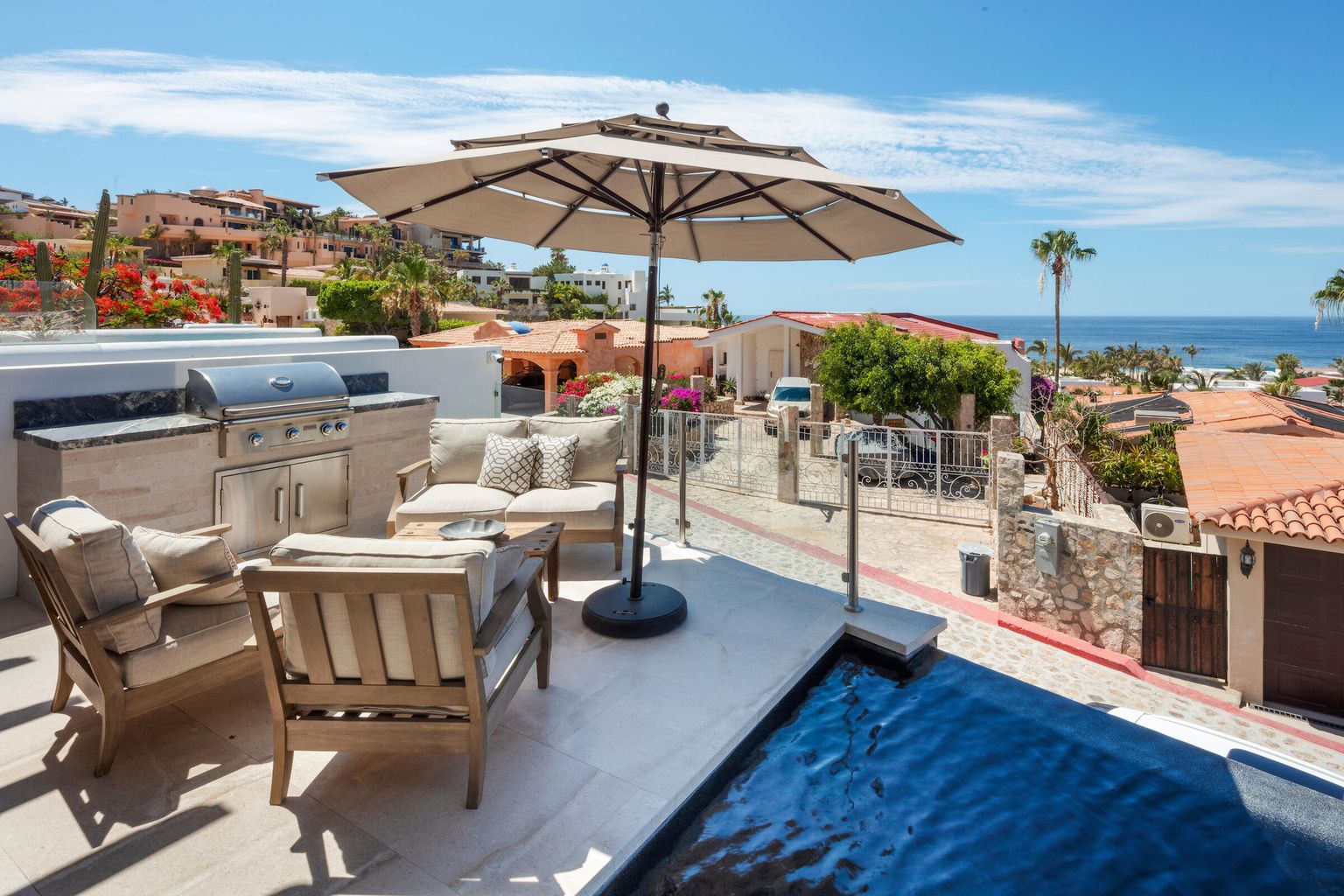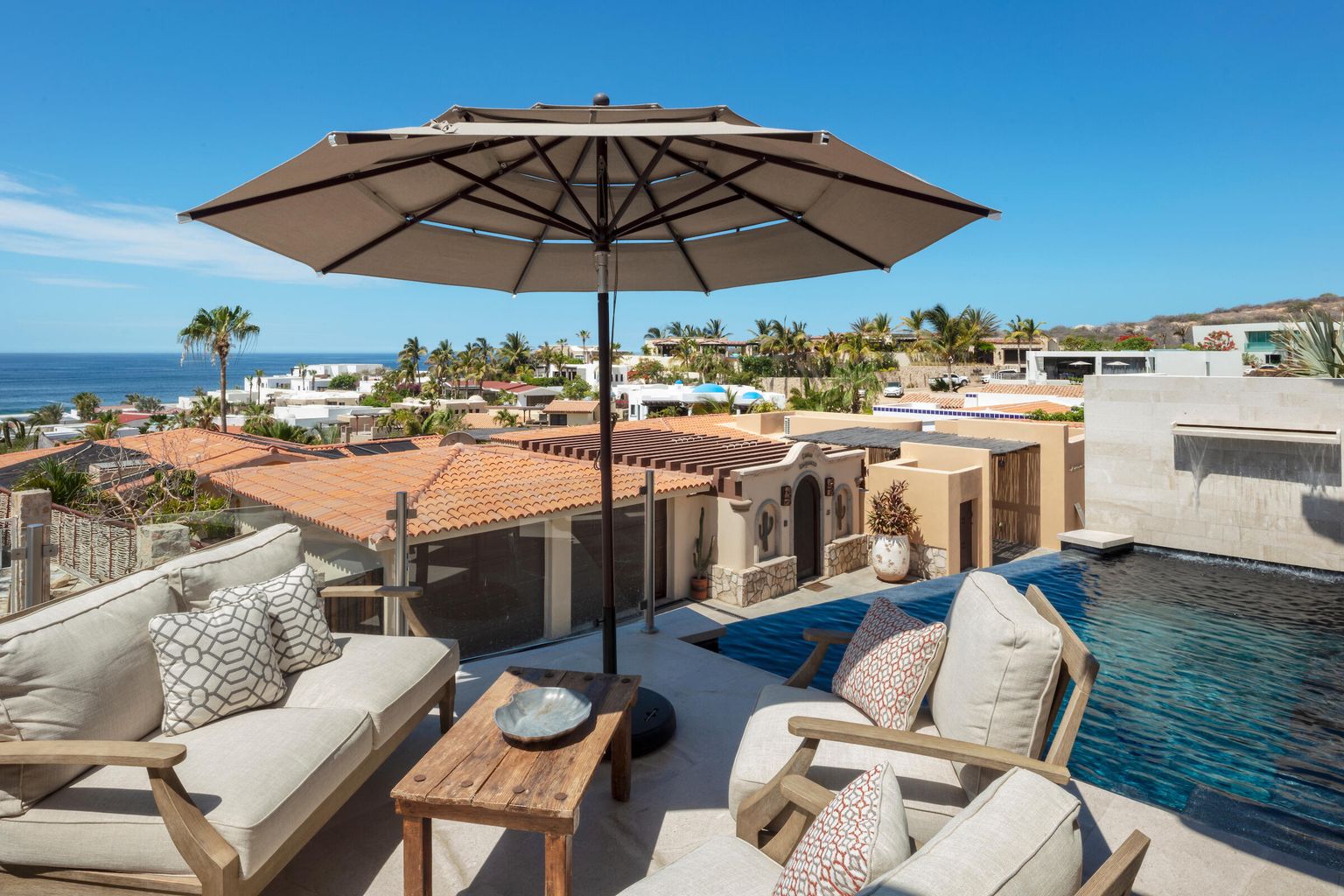 You are fortunate to have come across this exclusive Pedregal pacific side listing. This tremendous, 6-bedroom, 2021 reconstructed home is something to behold. Checking every box, Casa Tesoro provides: newly landscaped cactus garden with private pool and hot tub in rear of property, ocean view infinity plunge pool, 5 full ensuite bedrooms and fully appointed private access casita, state of the art Viking/Sub Zero and Bosch appliances, custom designed cabinets and leathered granite countertops, attached garage plus additional outside private parking, gated/guarded close-knit community, two minute walking distance to the private Pedregal beach, walking distance to pickle ball/basketball court, bocce ball court and gazebo,