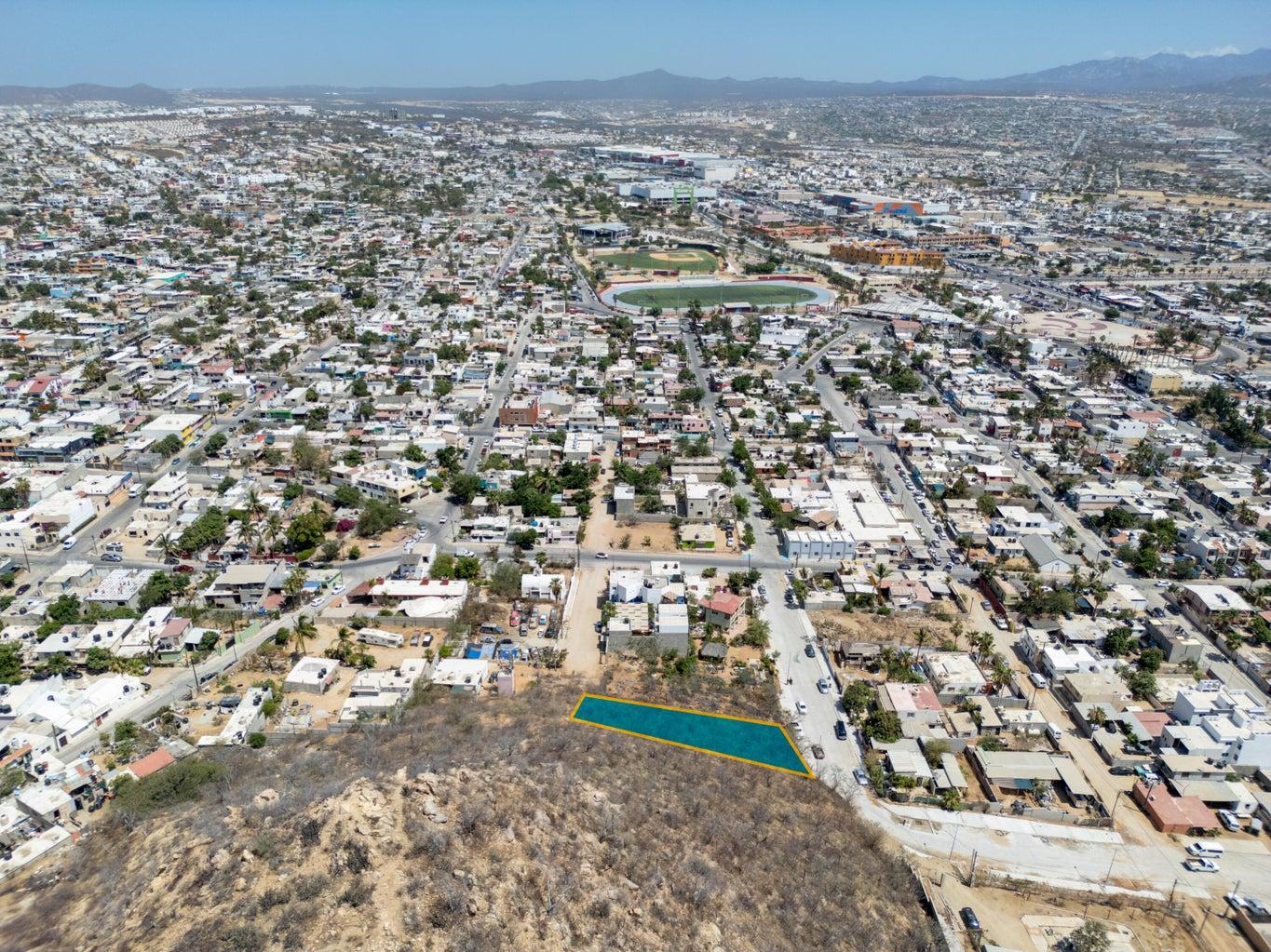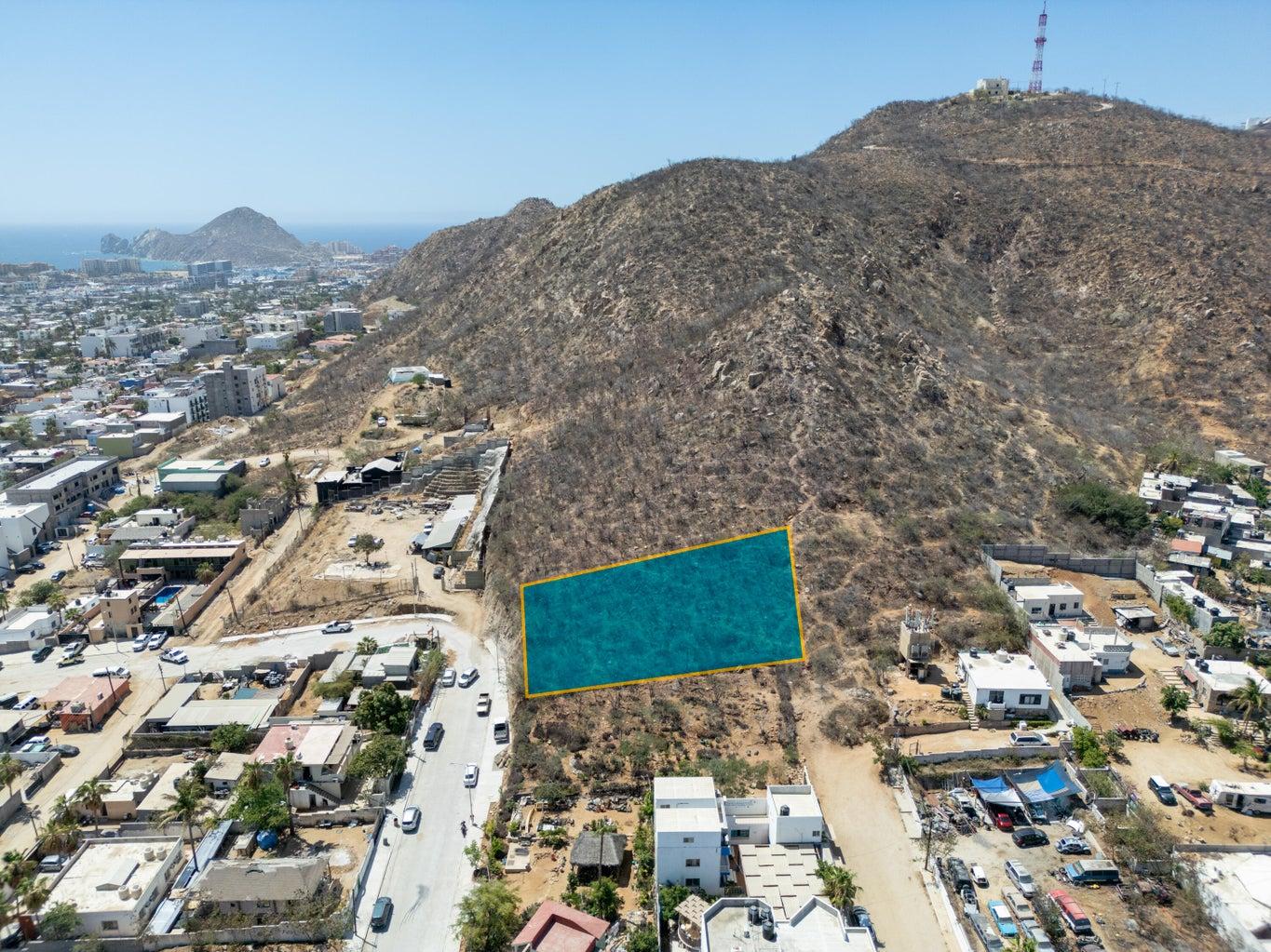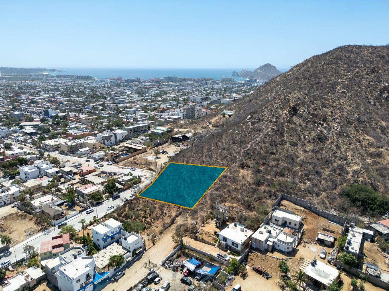 We are offering two adjacent lots for sale, each measuring 400 m², ideal for building a house or condos. Located in the vibrant center of Cabo San Lucas, these lots total 800 m² and offer stunning views of the ocean, marina, and city lights.