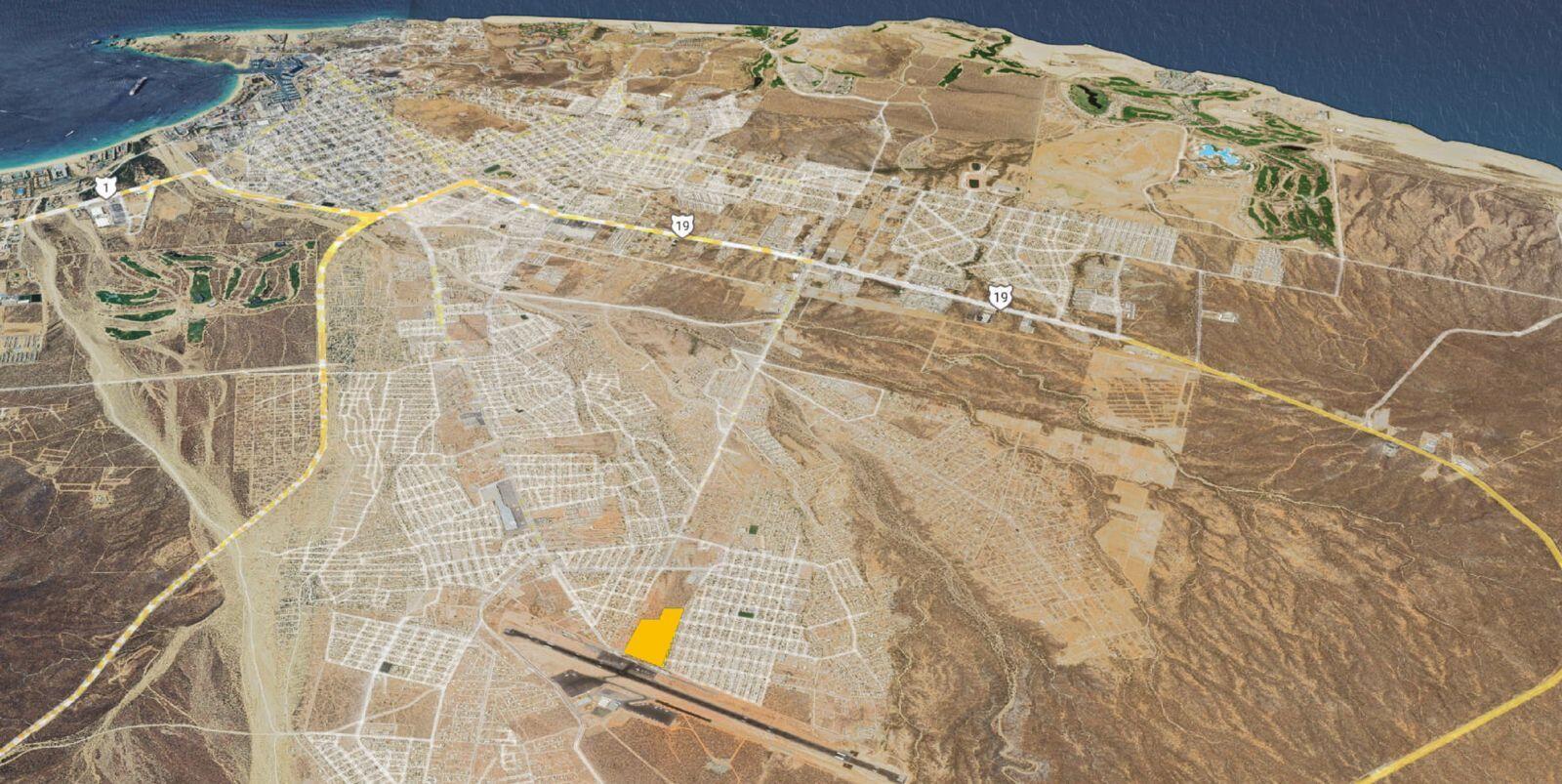 Oportunidad para Inversionistas y Desarrolladores. Este mega lote esta ubicado por el aeropuerto de Cabo San Lucas. El ''uso de suelo'' es Mixto Moderado - Vivienda y Comercio. La densidad por hectarea es de 90 viv/HA. Los coheficientes de ocupacion de suleo y utilizacion de suelo son del 0.6 y del 1.8. Maximo 4 pisos. Llamanos para mas detalles.