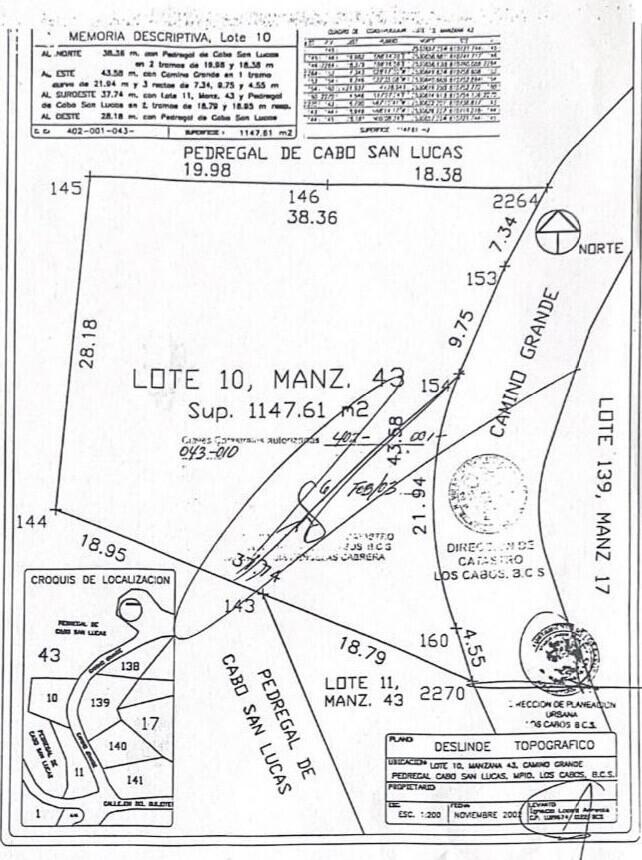 Address Location: Cabo San Lucas Address: Camino Grande Ote, Lote 10 Block 43 Pedregal, Cabo San Lucas, Pedregal Heights