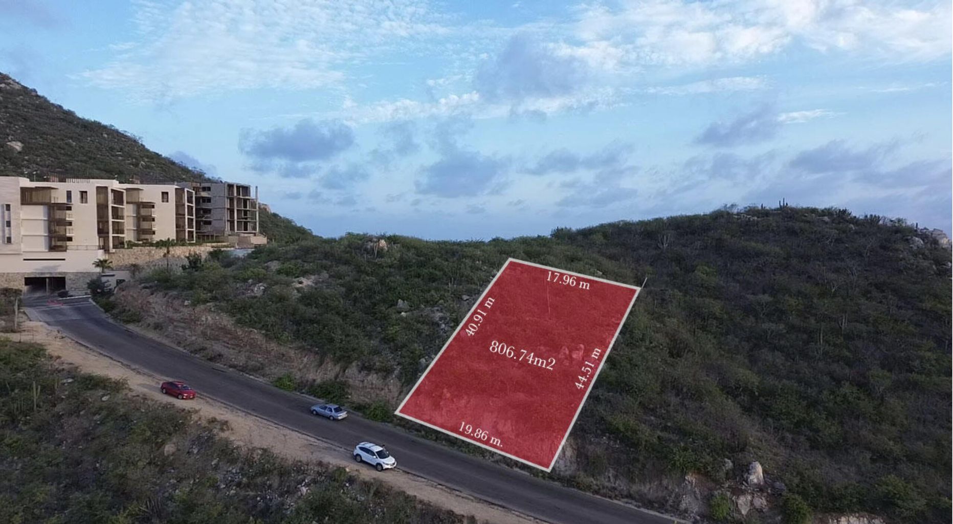 INCREDIBLE INVESTMENT OPPORTUNITY FOR DEVELOPERS! Discover a true hidden gem in Los Cabos' Sunset area, by Quivira's entrance. Spanning 806.74 sqm (8,681 sqft), this lot offers stunning city views of Cabo. Zoned H2, with a COS (Coefficient of Site Occupancy) of 0.6 and a CUS (Coefficient of Usable Space) of 1.2. This translates into remarkable potential, allowing for the creation of up to 50 lively units per hectare, equating to approximately 8 units of around 100 square meters each. The inclusion of commercial spaces further elevates the prospects, fostering a harmonious blend of residential and commercial domains. Accessible, with water/electricity. An investment canvas for an exclusive, tranquil residential community in one of the MOST desirable locations in Los Cabos.