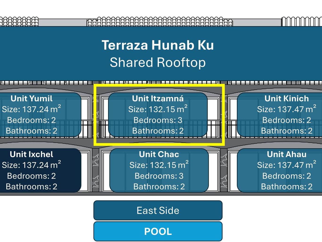 Welcome to ITZAMATUL, a small condo development featuring 6 premium units, each crafted with high-quality finishes such as parota wood and granite countertops. The property offers spacious interiors, private terraces, and a shared rooftop with breathtaking views of the sea and mountains. Itzamná 302 Unit, named after Itzamná, one of the creator gods representing wisdom and creation, this central and prominent unit on the second floor offers 132.15 m² of living space, with 3 bedrooms and 2 bathrooms. It features breathtaking sea and mountain views, a private terrace, and interiors finished with high-quality materials like parota wood and granite countertops. The shared rooftop provides panoramic views, ideal for relaxation and social gatherings.