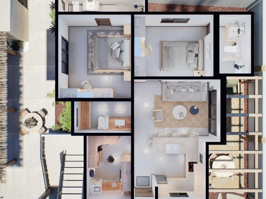 Luxury living in downtown Los Barriles!!! This third level condo features it's own rooftop deck! Perfect location for anyone that desires living a diverse Baja lifestyle. This development offers 15 spectacular units each with its own modern finishes. All units beautifully furnished with granite countertops, parota wood cabinetry, stainless steel appliances, laundry room complete with washer and dryer, ceiling fans, mini-splits, tile floors and showers, built in closets and much, more. Common areas include: pool, fire pits, BBQ and beautifully landscaped walkways. The brand new state of the art Palmas Pickle Ball courts are just a few steps away. Short walk to a warm, sandy beach, restaurants, and groceries. Perfect condo to live in year round, or to be used as rental investment income