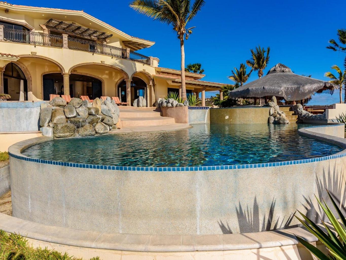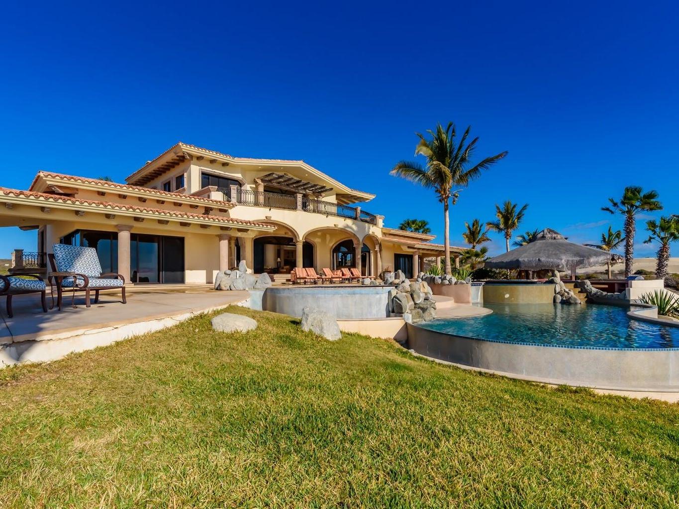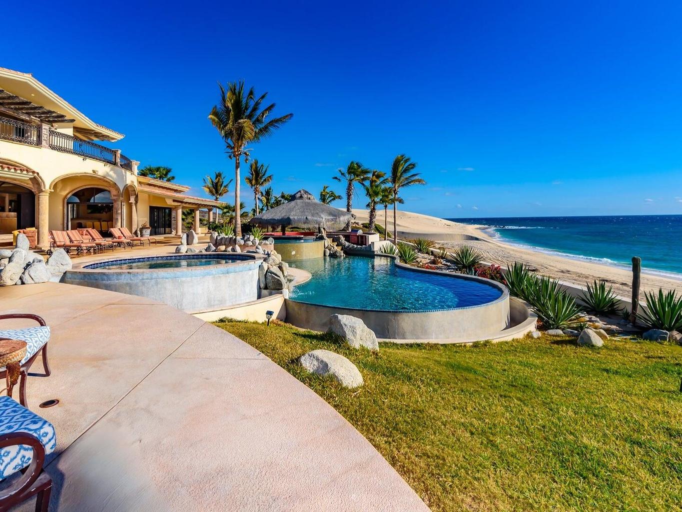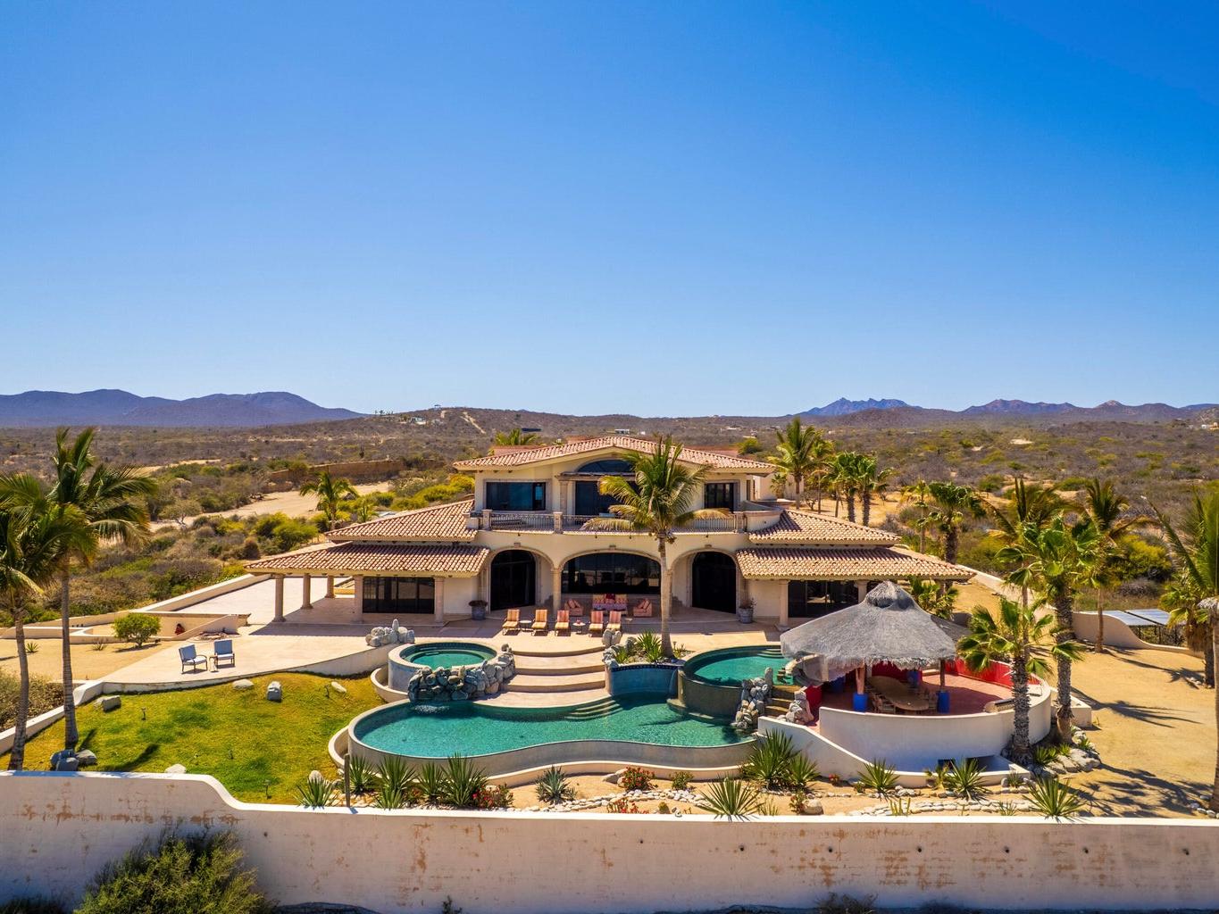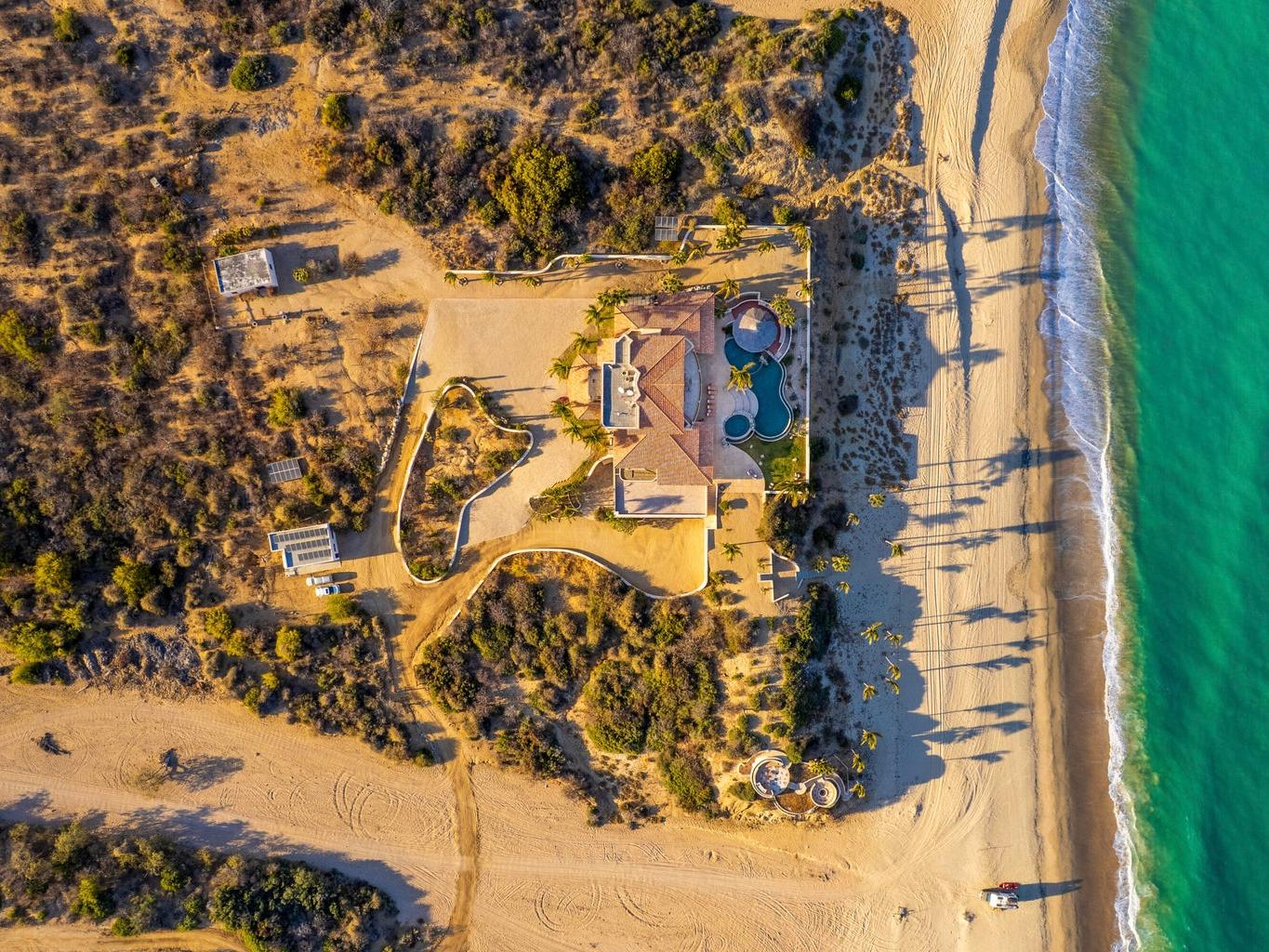 Discover the serene beauty of Villa las Dunas, a private off-the-grid beachfront estate set against the tranquil waters of the Sea of Cortez. Situated on the southern East Cape of Baja California Sur, Mexico, in a region known for world-class fishing, kitesurfing, kayaking, SCUBA diving, whale watching, and surfing. The 70-acre estate features 1,649 linear feet (502 meters) of stunning beachfront and significant potential for further development, complete with subdivision plans. The estate's name is inspired by the impressive sand dune, a distinctive geological feature that sits in breathtaking contrast to the cerulean blue sea. The main villa includes five bedrooms and six bathrooms, complemented by a lavish patio with dual pools connected by a waterfall and ten-person spa.