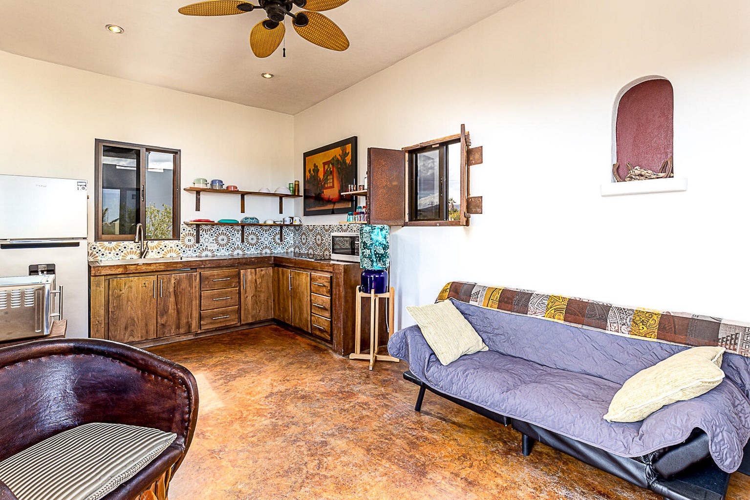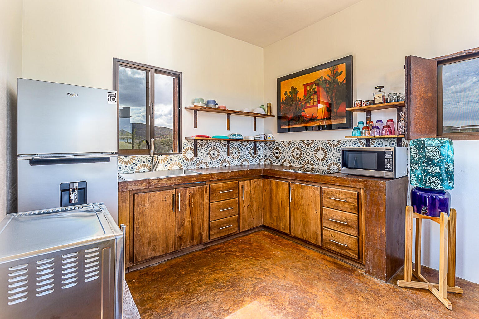 Spectacular Sea Views & Beach Access in Las Tinas: Discover the perfect coastal retreat in Las Tinas, just south of El Cardonal. This thoughtfully designed two-level home offers breathtaking panoramic views of the Sea of Cortez and surrounding mountains from every space. Upstairs, 365 sq ft of comfortable living includes an open-concept living and kitchen area, a bedroom, and a full bath, all opening to a spacious 254 sq ft patio where you can soak in the stunning seascape. For even more breathtaking scenery, head up to the rooftop terrace, where 360-degree views make for unforgettable sunrises and sunsets.
