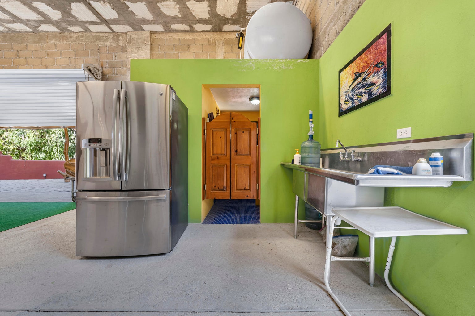 NEW IMPROVED PRICE! Located in the highly desired community of Buenos Aires, this turn-key, expansive property offers the perfect blend of seclusion and opportunity. With roads surrounding three sides of the property, privacy is guaranteed, with only one neighbor adjacent to the property line. The spacious bodega features a well-maintained 2016 5th wheel, boasting a generous length of 35ft with 3 slides. Inside the Bodega, you'll find a convenient full bathroom and a washer & dryer, making it a versatile space for storage and comfortable living. The property also includes a charming 375 sqft casita, complete with a large bedroom and a nicely sized full bathroom. Step outside onto the palapa patio and embrace the peaceful ambiance that surrounds you.