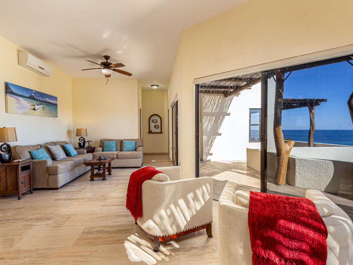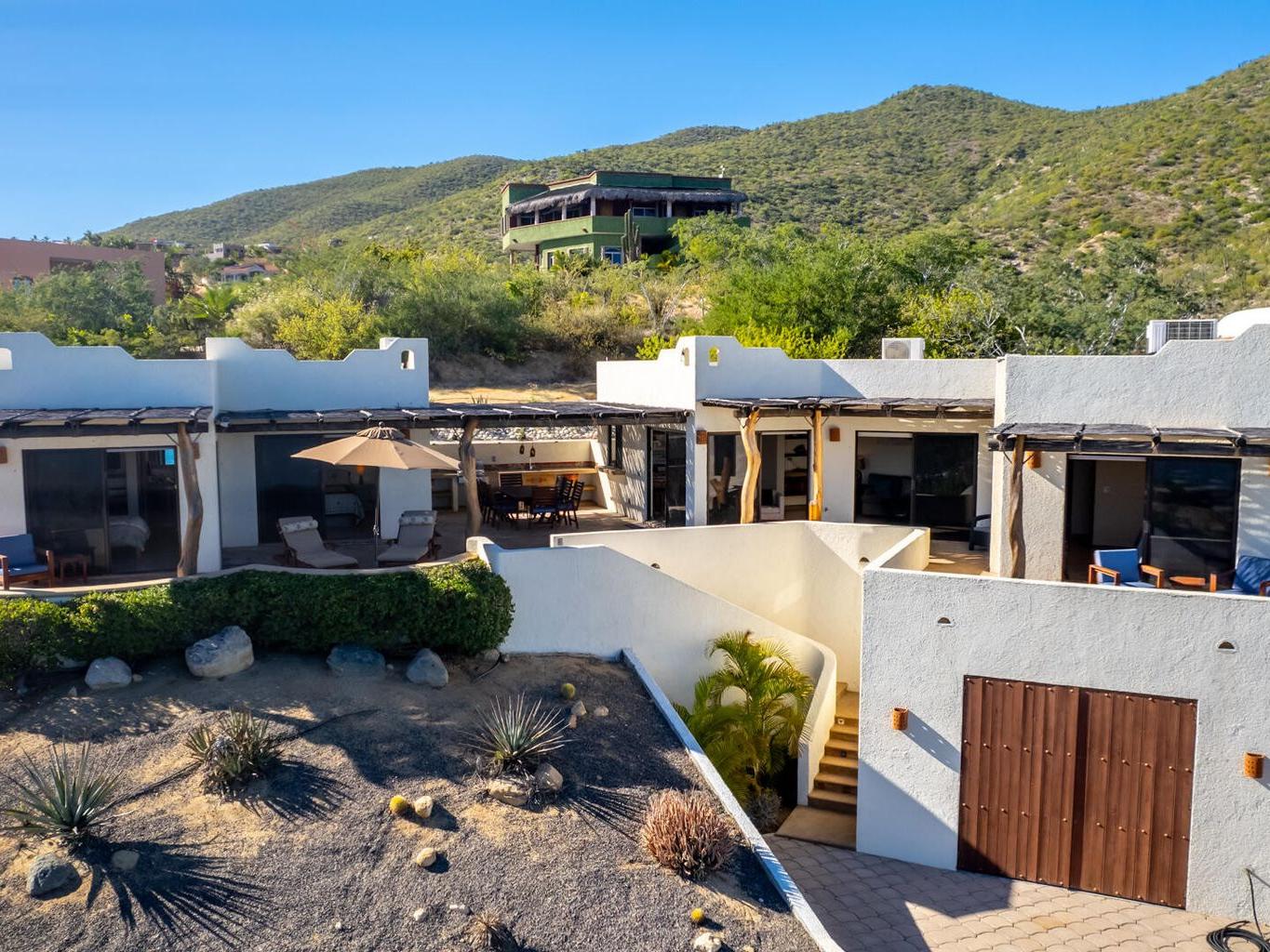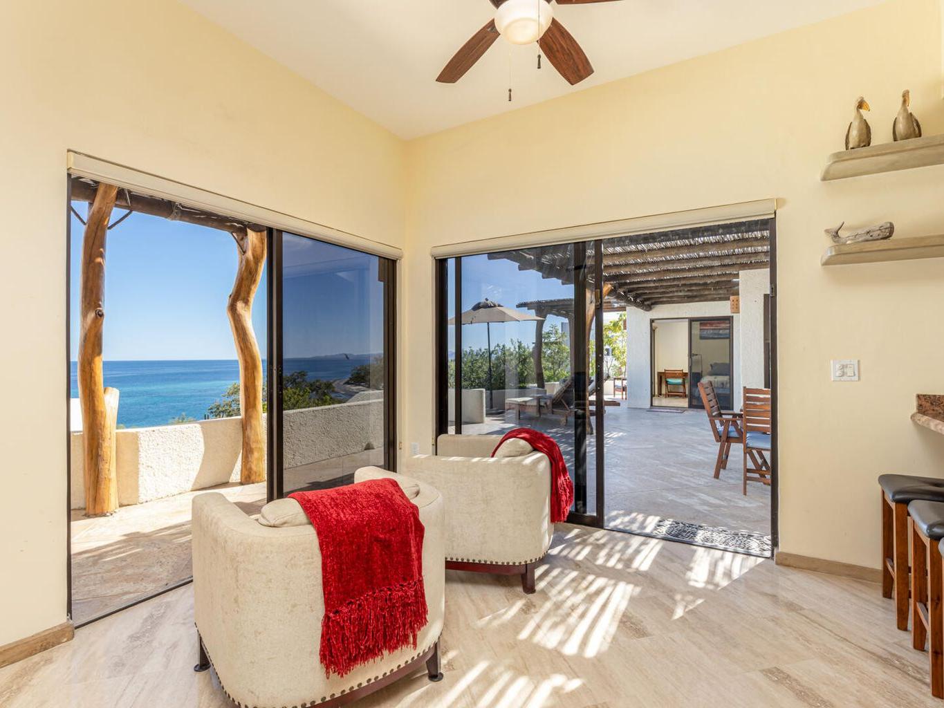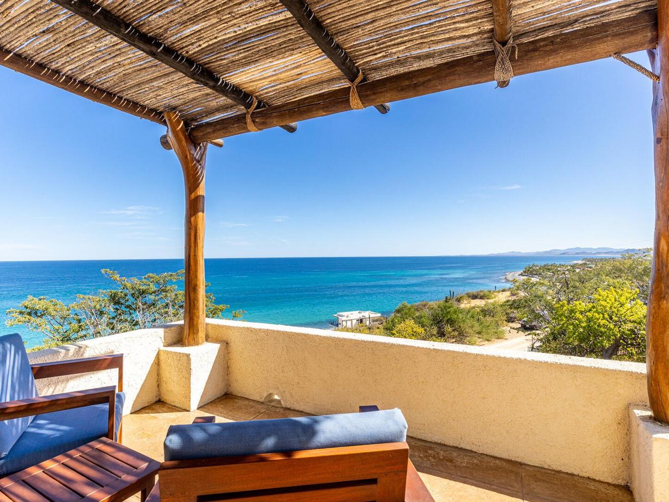 Perched on a hillside on a spacious 1500 m² lot in the desirable Las Brisas neighborhood, north of Los Barriles, Casa Mirador (built in 2014) boasts breathtaking, unobstructed views of the Sea of Cortez from La Ribera to Punta Pescadero. This expansive property offers 1200 sqft of living space with a fully equipped kitchen (granite counters, travertine floors), plus two additional bedrooms and 2.5 bathrooms, perfect for guests or rentals. Enjoy al fresco dining under a stunning Palo de Arco pergola and utilize the outdoor kitchen with BBQ. Just a 5-minute drive to Los Barriles and nearby beaches and amenities, including Tres Palapas Pickleball Courts. The home is partially furnished.