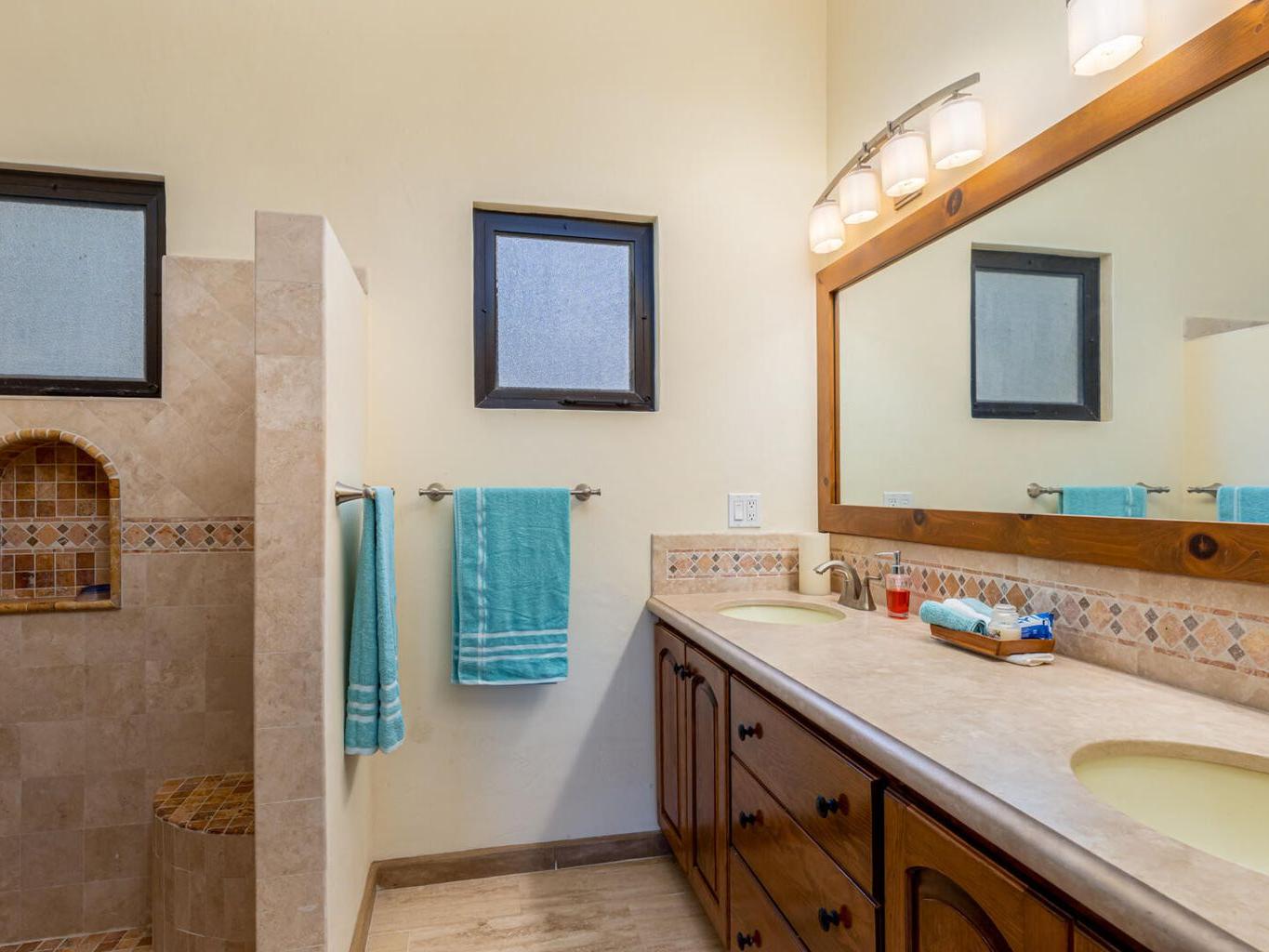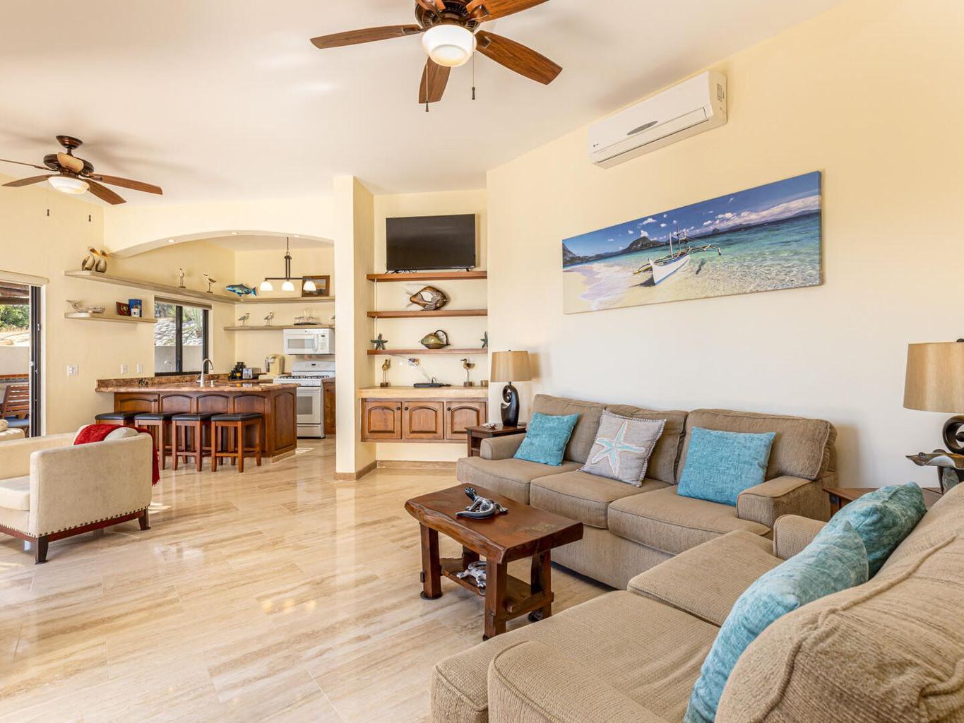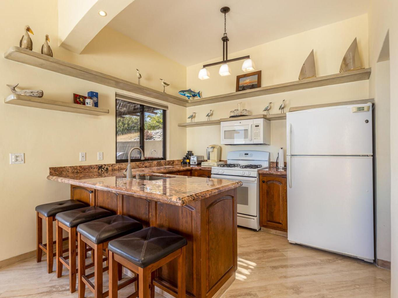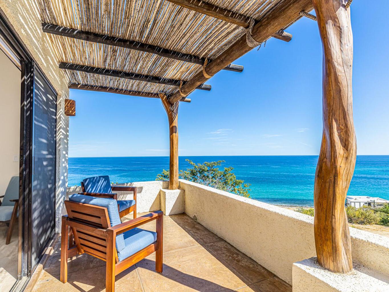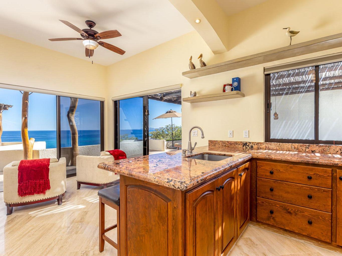 Perched on a hillside on a spacious 1500 m² lot in the desirable Las Brisas neighborhood, north of Los Barriles, Casa Mirador (built in 2014) boasts breathtaking, unobstructed views of the Sea of Cortez from La Ribera to Punta Pescadero. This expansive property offers 1200 sqft of living space with a fully equipped kitchen (granite counters, travertine floors), plus two additional bedrooms and 2.5 bathrooms, perfect for guests or rentals. Enjoy al fresco dining under a stunning Palo de Arco pergola and utilize the outdoor kitchen with BBQ. Just a 5-minute drive to Los Barriles and nearby beaches and amenities, including Tres Palapas Pickleball Courts. The home is partially furnished.