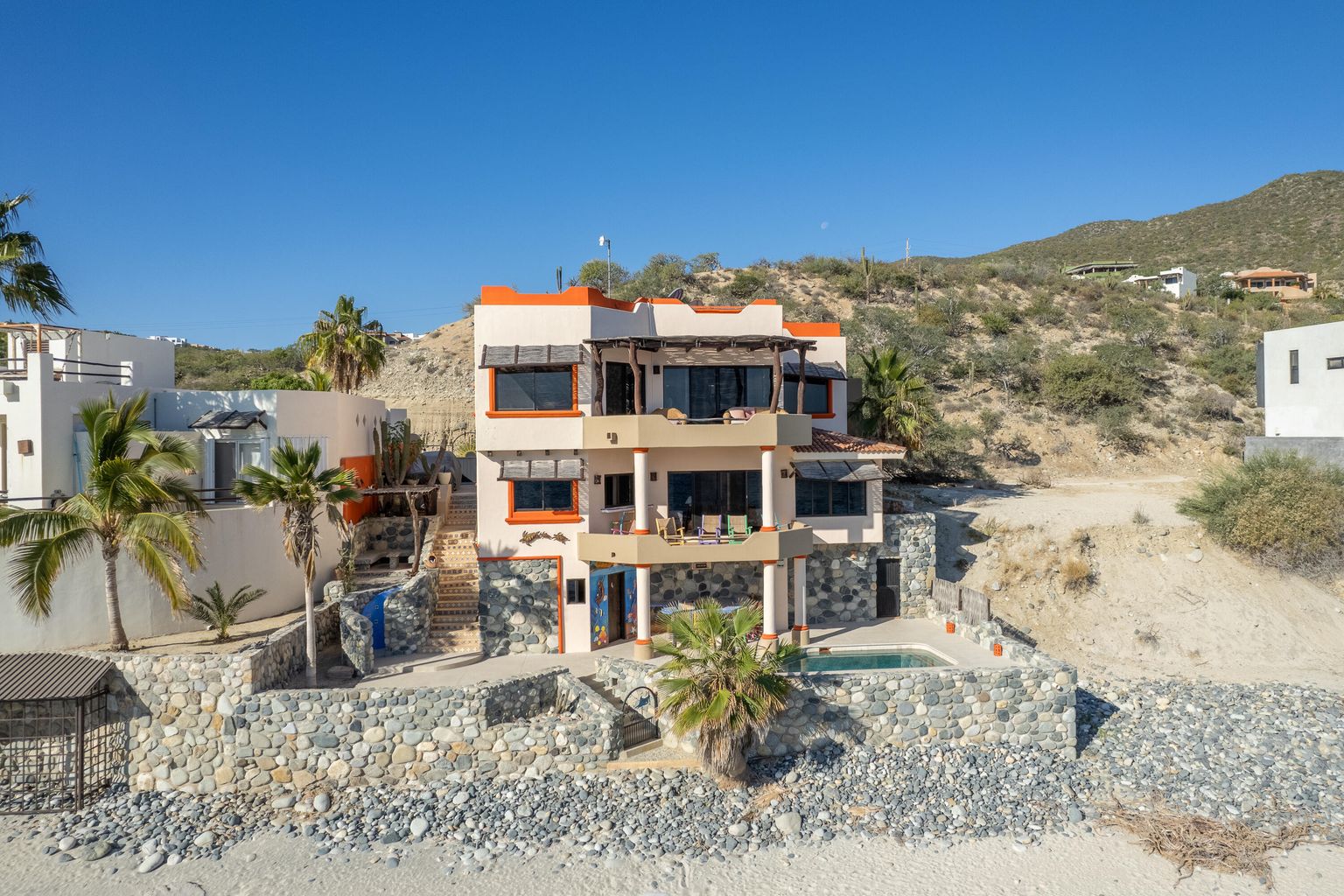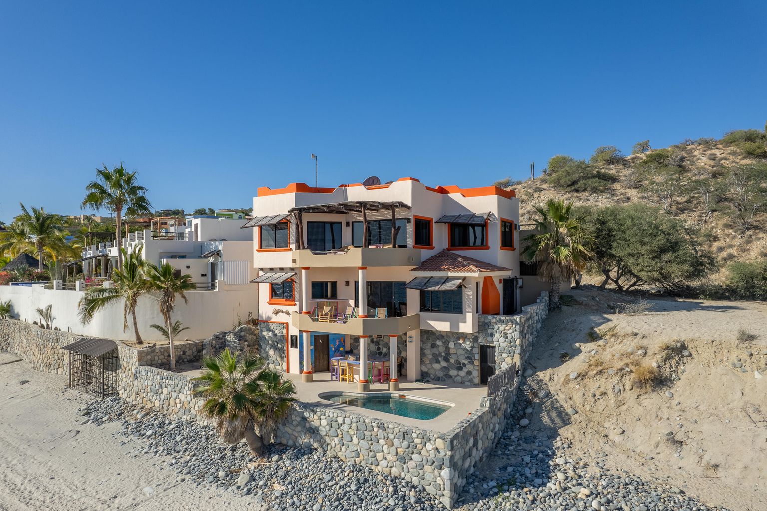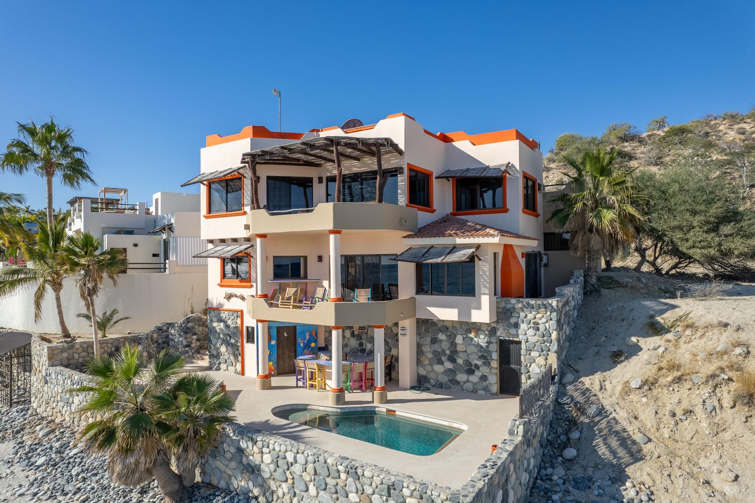 Casa Randy is special beach front living... Lounge in your pool while you watch the migration of whales go by. Snorkel at one of the best snorkel spots in the East Cape. Launch your SUP in the emerald green water just outside of the popular Tuna Slides.