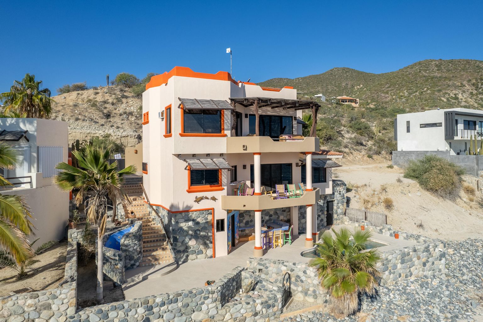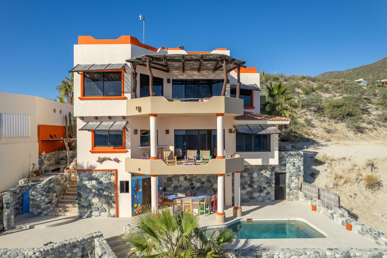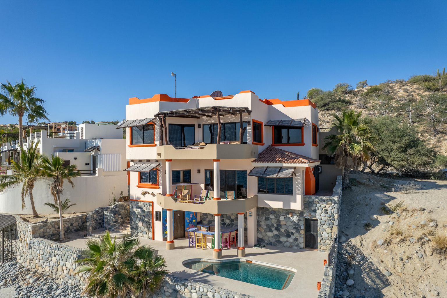 Casa Randy is special beach front living... Lounge in your pool while you watch the migration of whales go by. Snorkel at one of the best snorkel spots in the East Cape. Launch your SUP in the emerald green water just outside of the popular Tuna Slides.